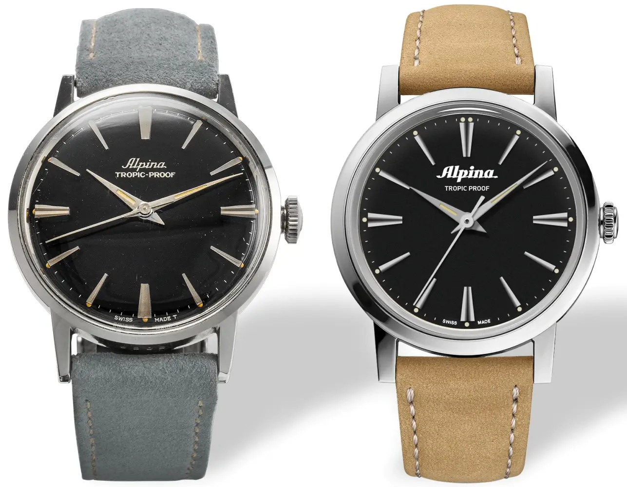 Zdjęcie: od lewej - archiwalny i współczesny zegarek Alpina Tropic-Proof