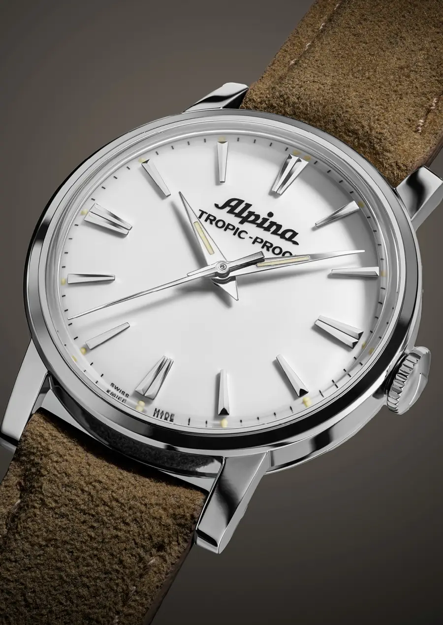 Z wytrzymałą kopertą, zaprojektowaną przez mistrza producentów kopert - François Borgela. Z mechanizmem, który już wtedy oferował 2-dniową rezerwę chodu, oraz tarczami gwarantującymi doskonałą czytelność. Zegarki Alpiny z tamtych lat były antymagnetyczne, wodoszczelne, odporne na rdzę i wstrząsy. Tropic-Proof był ucieleśnieniem filozofii Alpina.
