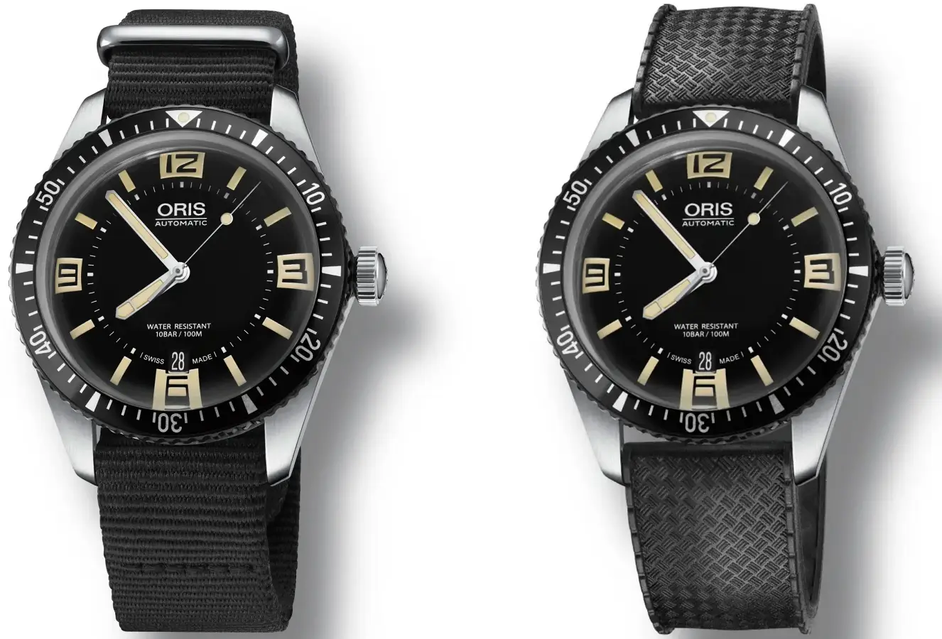 1965 Oris wprowadza swój pierwszy zegarek do nurkowania. Ma on kopertę o średnicy 36 mm wykonaną ze stali nierdzewnej, wypukłe szkło akrylowe, dwukierunkowy obrotowy pierścień, zakręcaną koronkę i czarną tarczę z charakterystycznymi, wysoce kontrastowymi detalami, w tym duże, luminescencyjne znaczniki godzin 3., 6., 9. i 12.