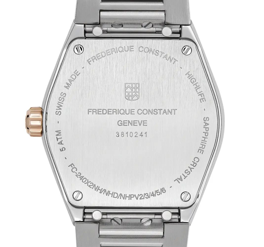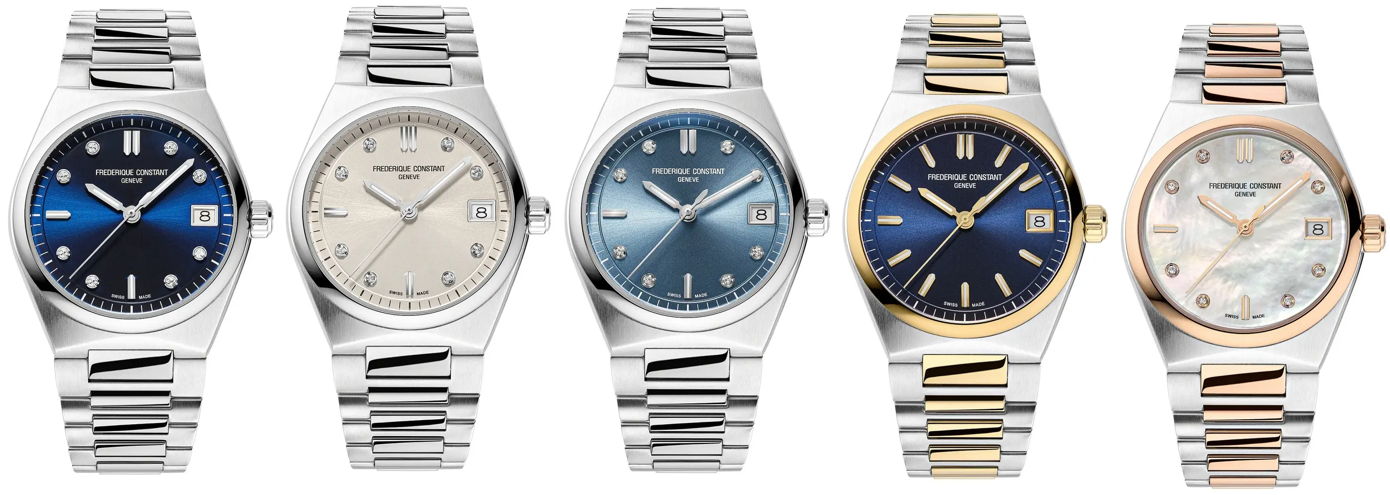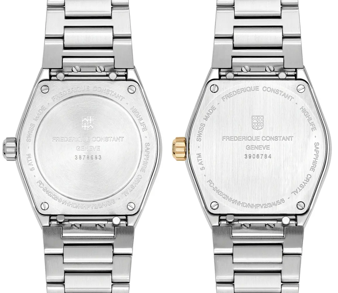 Zaprezentowanymi zegarkami marka Frederique Constant uzupełniła kolekcję kwarcowych modeli Highlife Ladies. Teraz kobiety mają naprawdę duży wybór, tak pod względem wersji kolorystycznych, jak i dodatkowych atrakcji. To uniwersalny, sportowy zegarek z bezpiecznym poziomem wodoszczelności, masą luminescencyjną na wskazówkach i nie diamentowych indeksach, dzięki czemu można odczytać czas także w ciemności. Do tego modny sportowo-elegancki wygląd i dodatkowe paski. W sam raz jako prezent na liczne okazje.