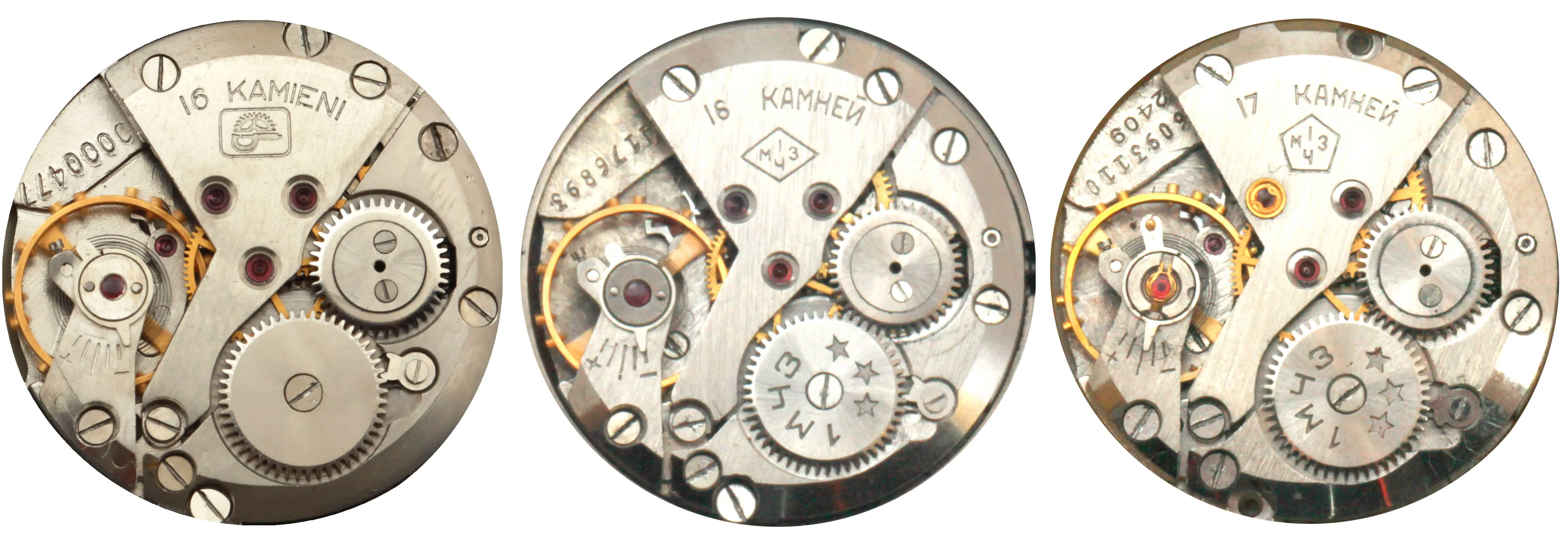 W Błoniu produkowano zegarki z wykorzystaniem tylko trzech odmian mechanizmów popularnie nazywanych „Kirowskie”: