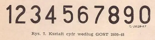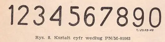 W tym właśnie opracowaniu przedstawiona jest regulacja dotycząca czcionki cyfr używanej w przemyśle w Polsce i w Związku Radzieckim.
