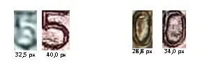 Przy tej samej wysokości cyfr, cyfry radzieckie (po prawej stronie) są szersze.
