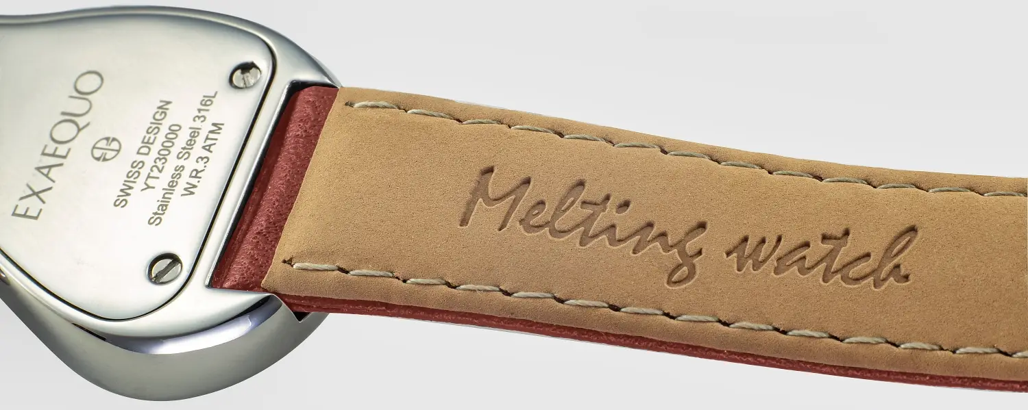 Melting Watch Rose Gold to kwintesencja klasycznego stylu Exaequo, wzbogacona o akcent różowego złota. Koperta tego modelu, wykonana ze stali nierdzewnej 316L i pokryta powłoką PVD w odcieniu różowego złota, ma wymiary 47 mm x 28 mm, oraz charakterystyczny, owalny kształt spłaszczony w centralnej części. Asymetryczne, płynne linie koperty nadają zegarkowi surrealistyczny charakter, a zaokrąglona koronka została umieszczona po prawej stronie.
