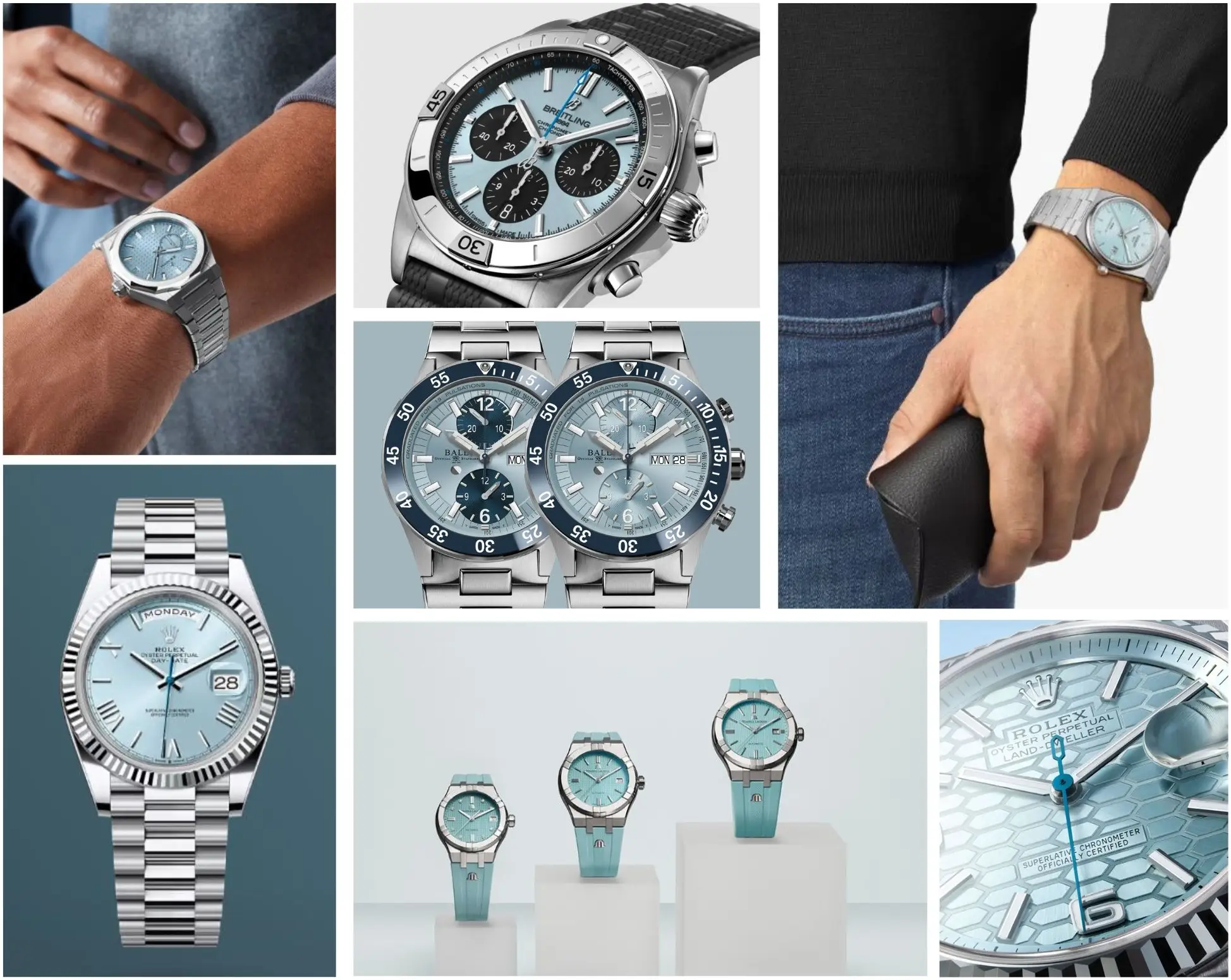 Od kilku lat staje się on coraz bardziej pożądany w świecie luksusowych zegarków. Przykłady? Rolex President Day-Date, czy najnowszy Rolex Land-Dweller. A także Breitling Chronomat B01 Ice Blue, Zenith Defy Skyline Ice-Blue, Ball Roadmaster Rescue Chronograph, Maurice Lacroix Aikon Limited Summer Edition czy Tissot PRX by wymienić tylko kilka.