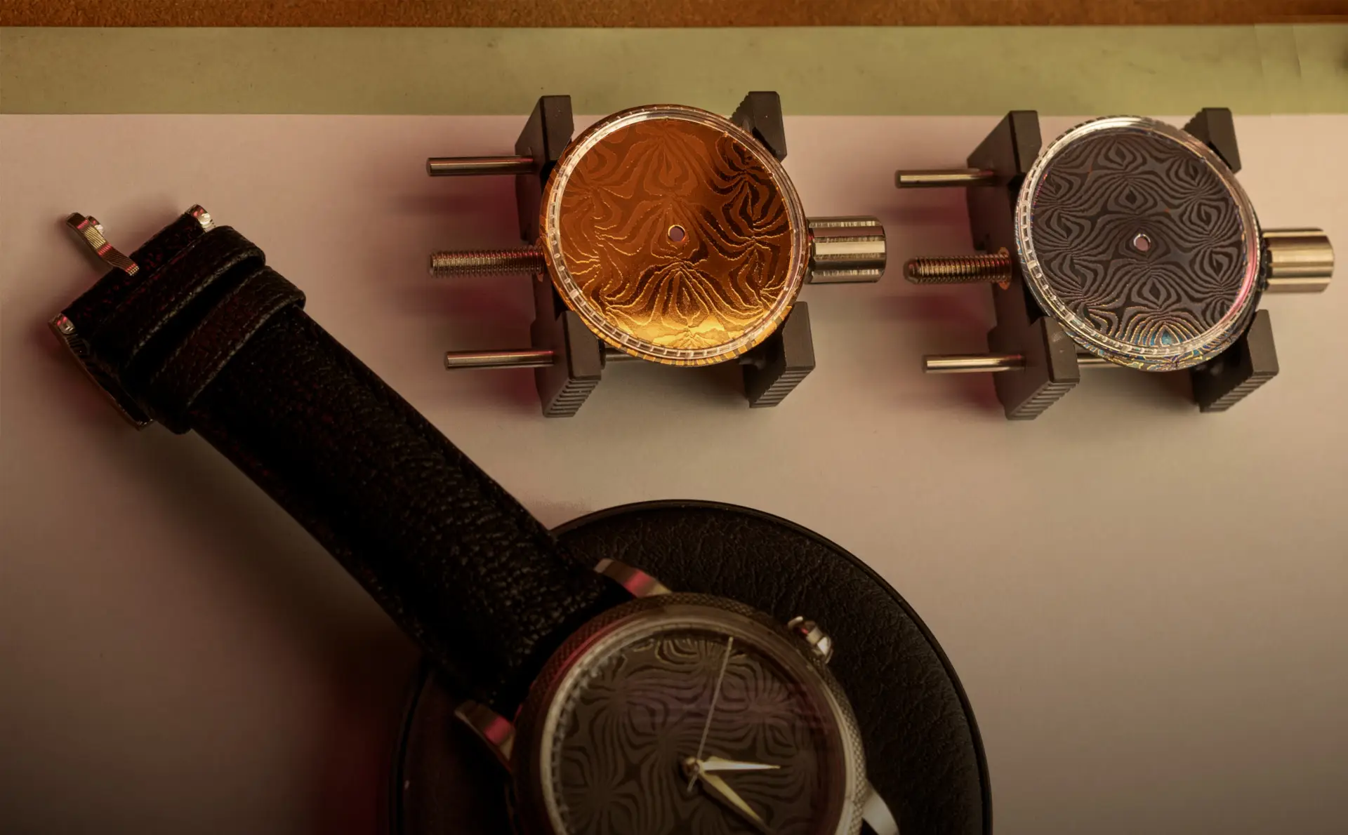 Wytwarza on nie tylko koronki, tarcze i ich komponenty, ale także wskazówki oraz części mechanizmu. Każdy z tych elementów jest następnie ręcznie wykańczany, zgodnie z jego rygorystycznymi standardami – przykładowo, samo wykończenie kompletu wskazówek zajmuje co najmniej jeden cały dzień roboczy. Z kolei obróbka pojedynczego mostka ze stali damasceńskiej wymaga przynajmniej tygodnia pracy, ponieważ jest to proces niezwykle czasochłonny i precyzyjny. Efektem końcowym jest unikalne połączenie surowej struktury damasku z wysokopołyskowymi detalami, co stanowi kolejny wyróżnik zegarków manufaktury.