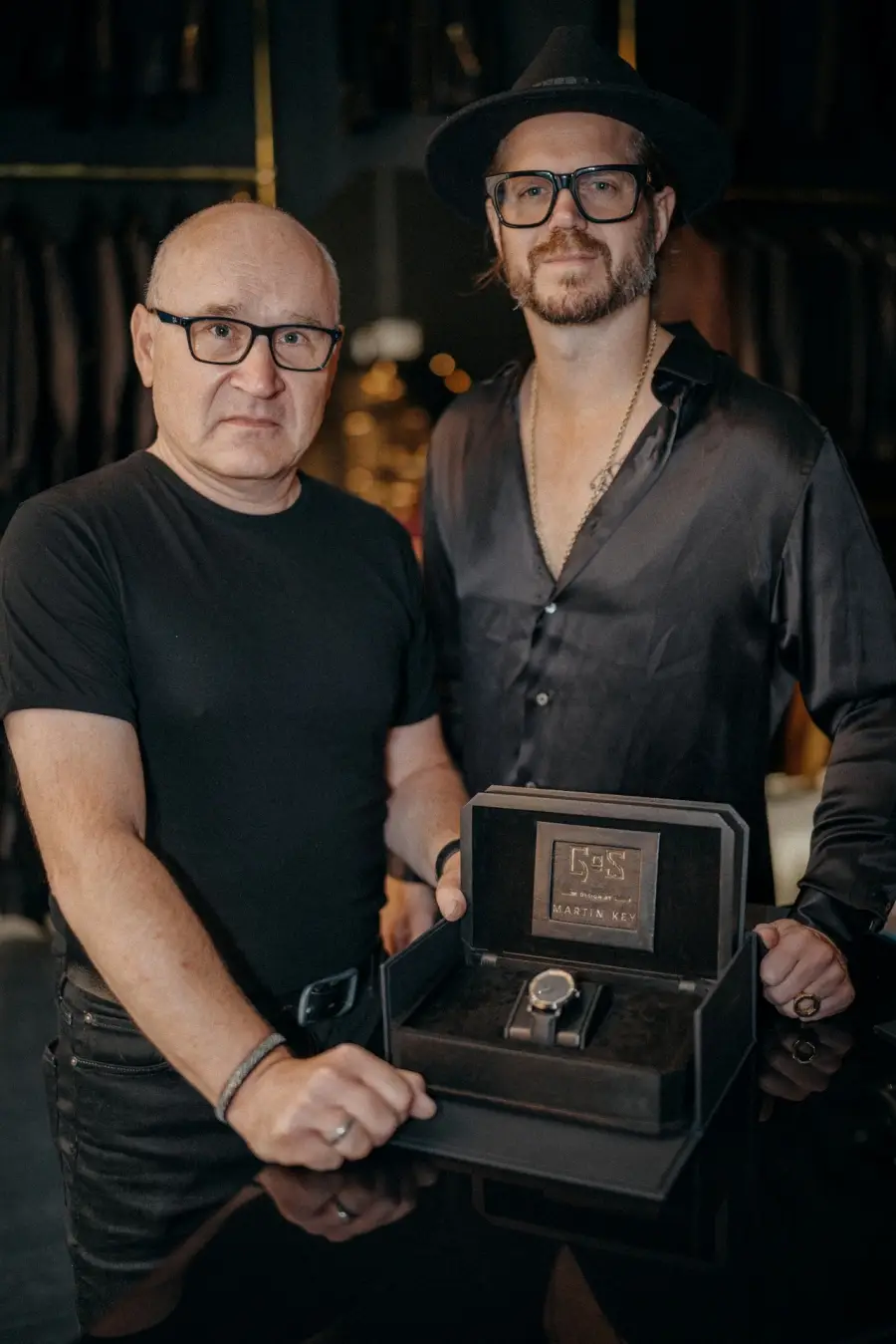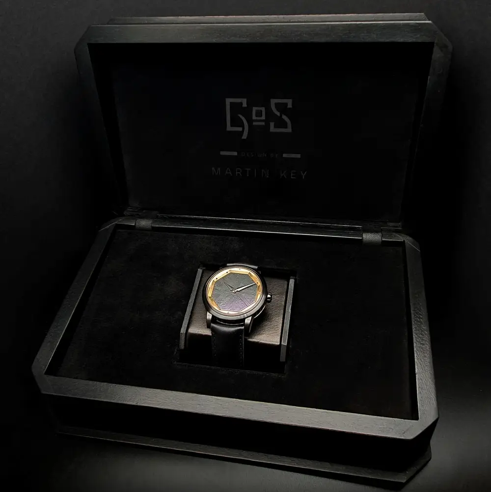 Na początku 2024 roku, Patrik Sjögren oraz szwedzki projektant mody - Martin Key, spotkali się i szybko odkryli, że ich wspólna pasja do rzemiosła i dbałości o detale może zaowocować czymś niezwykłym. Efektem tej współpracy jest zegarek, który łączy elementy stylistyczne i kolorystyczne autorstwa Martina Keya, z unikalnymi tarczami z damasceńskiej stali oraz charakterystycznym wzornictwem GoS. Jak każdy zegarek GoS, również ten egzemplarz został wykonany, wykończony i złożony ręcznie w Atelier GoS w Linköping.