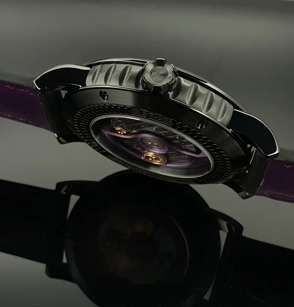 Dodatkowo, zastosowano innowacyjną technikę powlekania wskazówek, aby uzyskać głęboki połysk w odcieniu Phantom Black, zapewniający ekstremalny kontrast między światłem a cieniem – efekt niemożliwy do osiągnięcia przy tradycyjnie malowanych wskazówkach.
