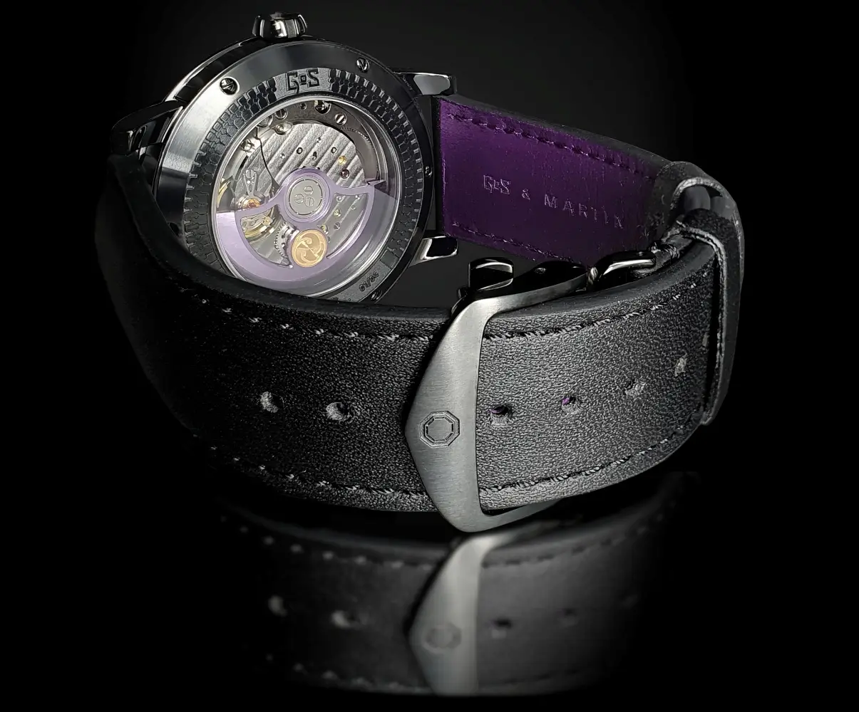 Wewnątrz koperty pracuje mechanizm La Joux-Perret G101 - zaprezentowany w 2021 roku, został dostosowany do specyfikacji GoS. Oferuje 68-godzinną rezerwę chodu i ma 24 kamienie łożyskujące. Rotor z litego wolframu jest ażurowany, fazowany i powlekany nano-ceramiczną powłoką w kolorze purpurowym, z emblematem GoS wykończonym w złocie.