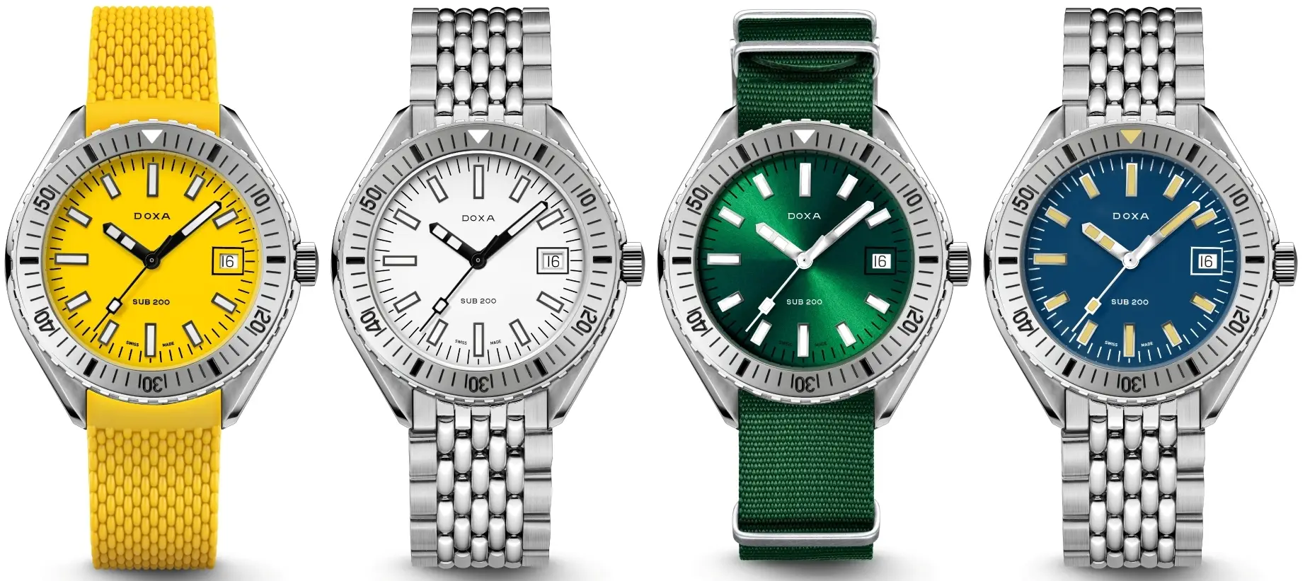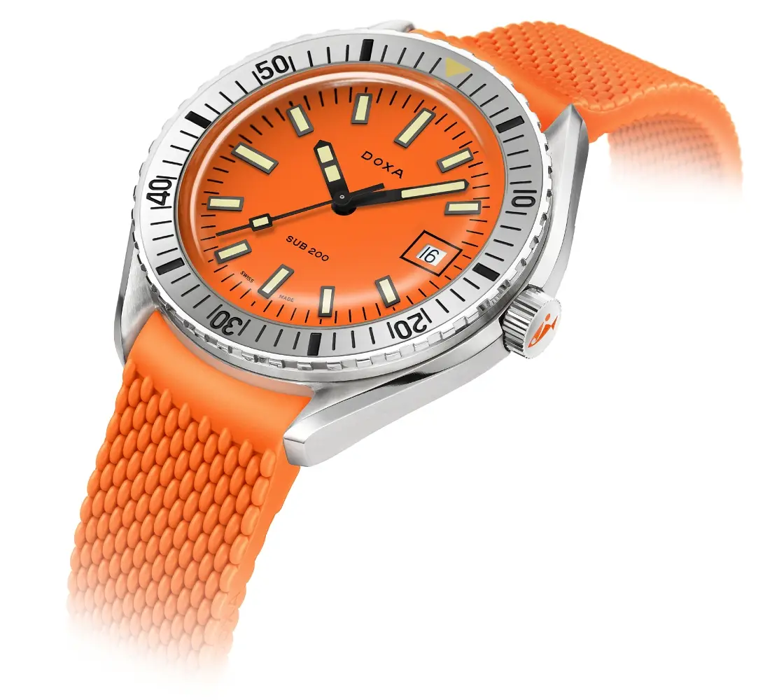 Mnogość opcji poszerza jeszcze możliwość wyboru sposobu mocowania do nadgarstka, gdyż są wersje na pasku gumowym, na kultowej bransolecie ze stali nierdzewnej z ogniwami w stylu ziarenek ryżu lub także na pasku typu NATO, dla modelu Sea Emerald. To potwierdzenie, że nadal Doxa Sub 200 kontynuuje tradycję łączenia ponadczasowego wzornictwa, funkcjonalności, niezawodności i elegancji wraz z wyraźnymi akcentami zaczerpniętymi z modeli sprzed kilkudziesięciu lat. I to wszystko w bardzo przystępnej cenie. Dzisiaj, z 16 nowymi referencjami, dołączającymi do stałej kolekcji SUB, nowy SUB 200 zajmuje swoje miejsce w prestiżowej, cenionej i wręcz kultowej linii z ponad 50-letnim doświadczeniem.
