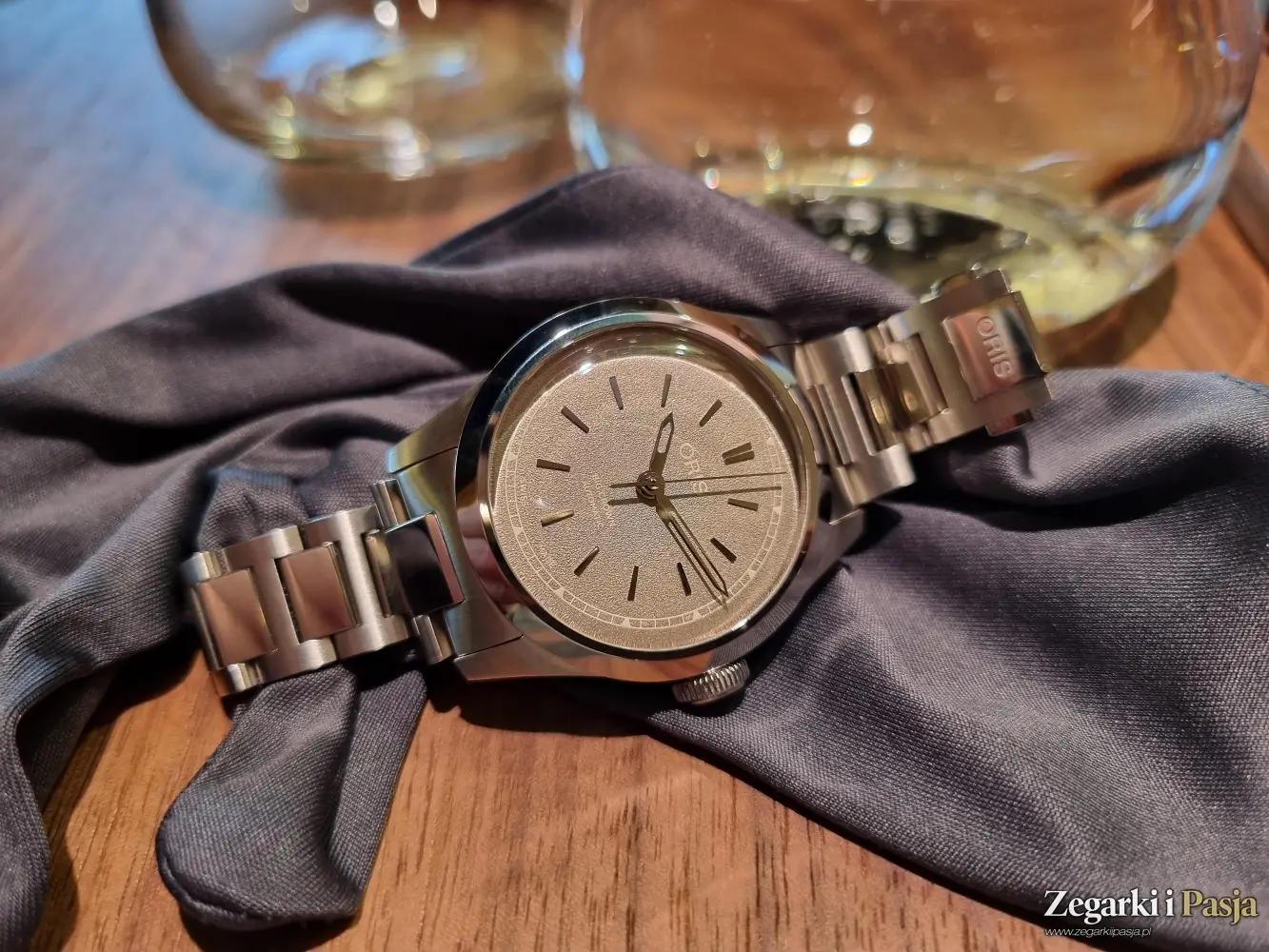 Model ten, przeznaczony dla kobiet, także ma szwajcarski mechanizm z automatycznym naciągiem – Oris kaliber 531, bazujący na ETA 2671, zgodny 100-procentowo mechanicznym podejściem Orisa do zegarmistrzostwa. To także sprawdzony mechanizm, stosowany z racji wymiaru bardzo często w zegarkach damskich. Koperta ma średnicę 34 mm, 11,1 mm grubości i 41 mm wysokości od ucha do ucha. Wodoszczelność także ustalono w klasie do 5 atm.