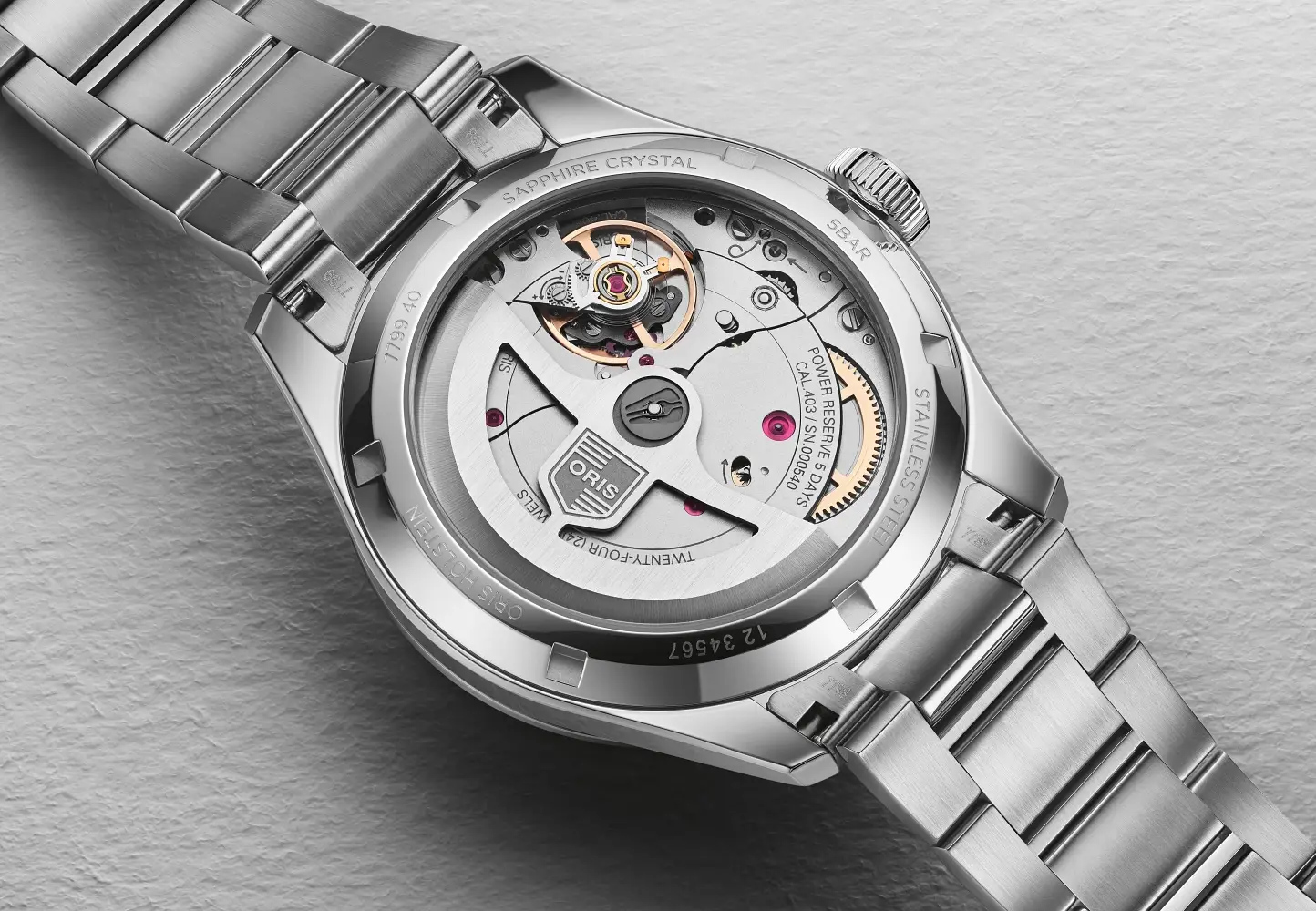 Nowością jest również sportowa, stalowa bransoleta H-link. Ogniwa w kształcie litery „H” są szczotkowane, a elementy je łączące są polerowane na wysoki połysk. Jest ona wyposażona w opracowane przez Orisa zapięcie motylkowe, które nadaje bransolecie „bezszwowe”, płynne wykończenie po zapięciu na nadgarstku. Wersje z mechanizmem Oris Calibre 403 są również wyposażone w pasek ze skóry jelenia, dostarczany przez zaprzyjaźnioną firmę Cervo Volante.