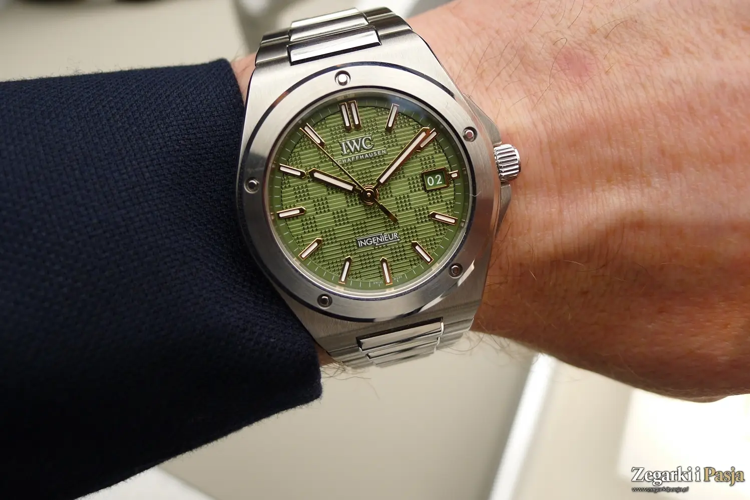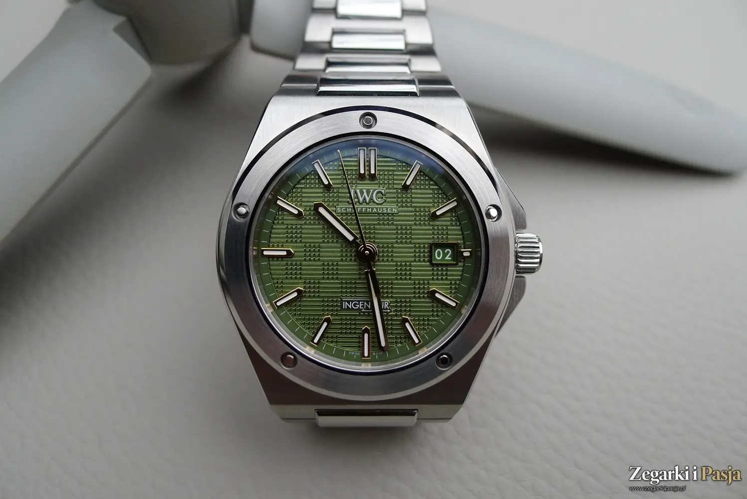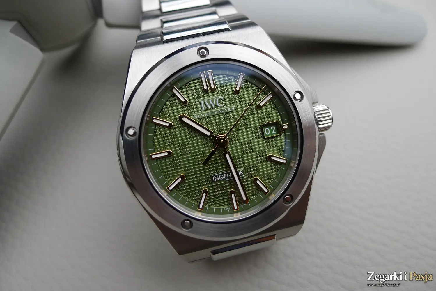 Zegarek z filmu, Ingenieur SL Reference 1832, również zachowuje sportowy charakter, ale jego design jest bardziej surowy i klasyczny, co odzwierciedla epokę, z której pochodzi. Zielona tarcza w tym modelu ma prostszy układ, bez wzoru „Grid”, ale jej intensywny kolor i minimalistyczne znaczniki godzin podkreślają techniczny rodowód zegarka.