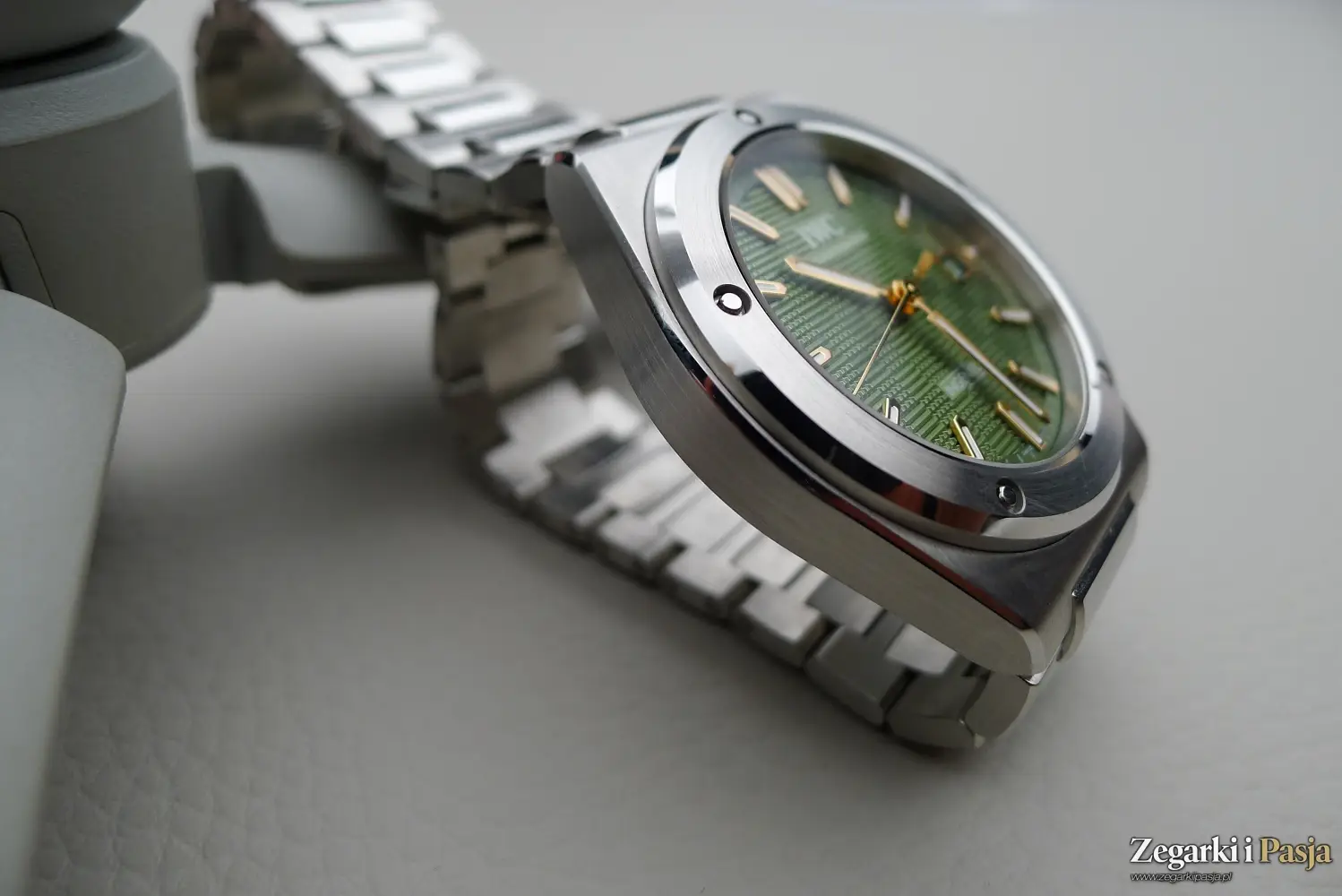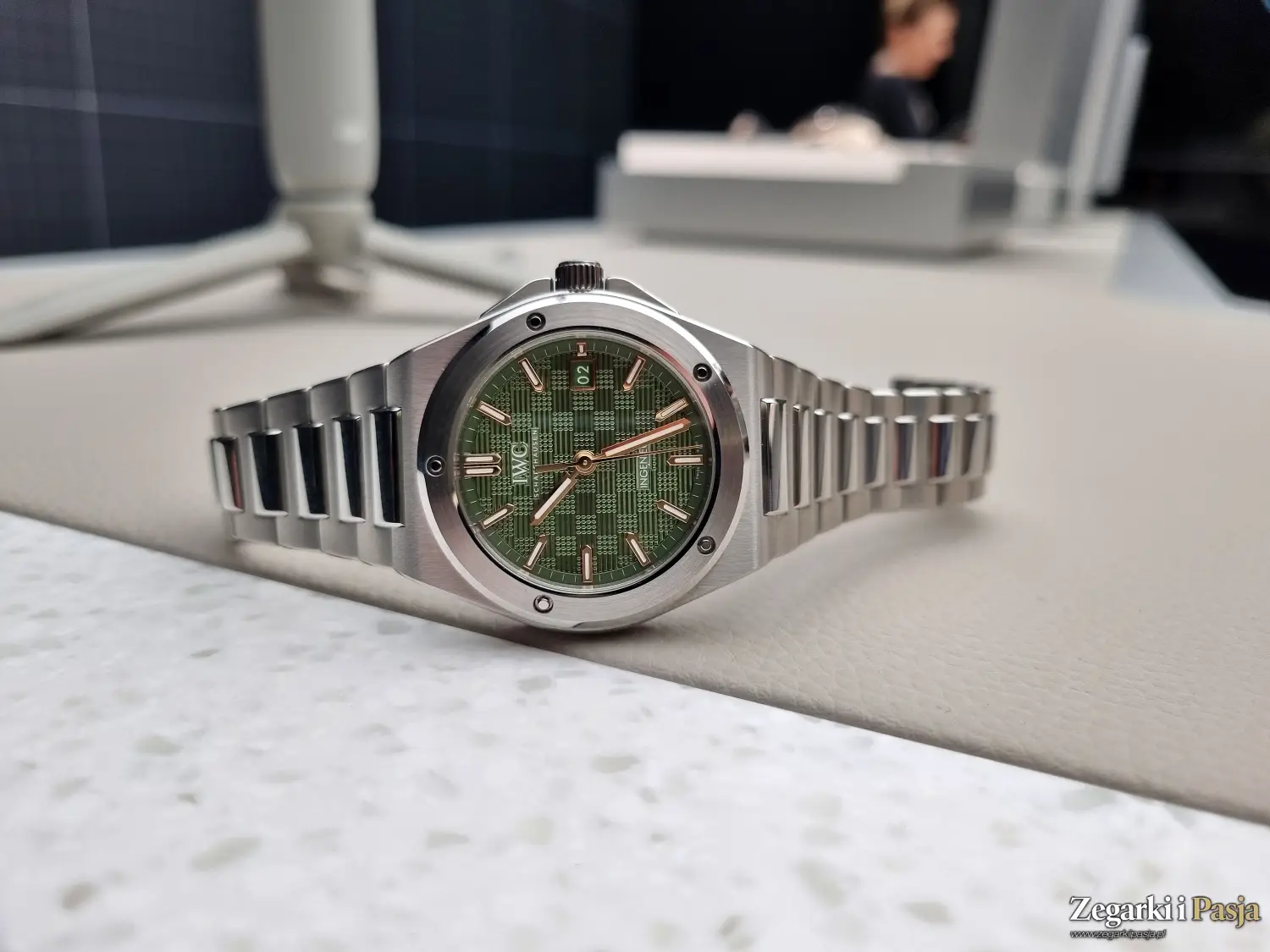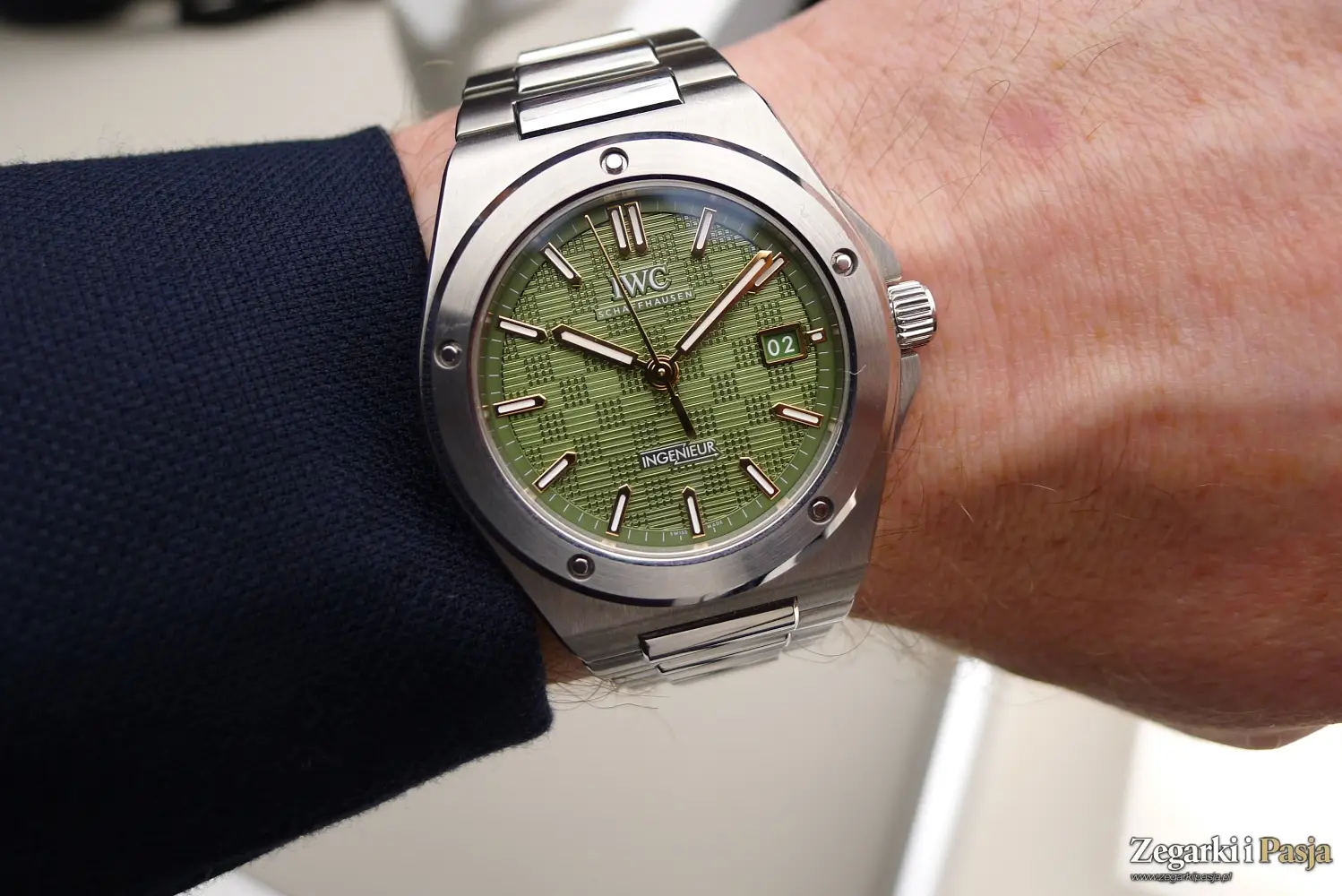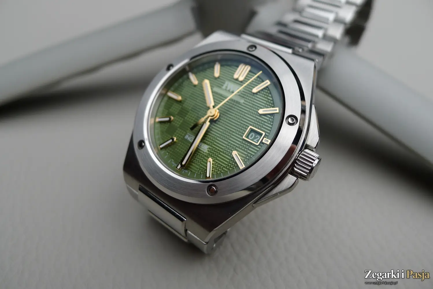 Zegarek z filmu, Ingenieur SL Reference 1832, również zachowuje sportowy charakter, ale jego design jest bardziej surowy i klasyczny, co odzwierciedla epokę, z której pochodzi. Zielona tarcza w tym modelu ma prostszy układ, bez wzoru „Grid”, ale jej intensywny kolor i minimalistyczne znaczniki godzin podkreślają techniczny rodowód zegarka.