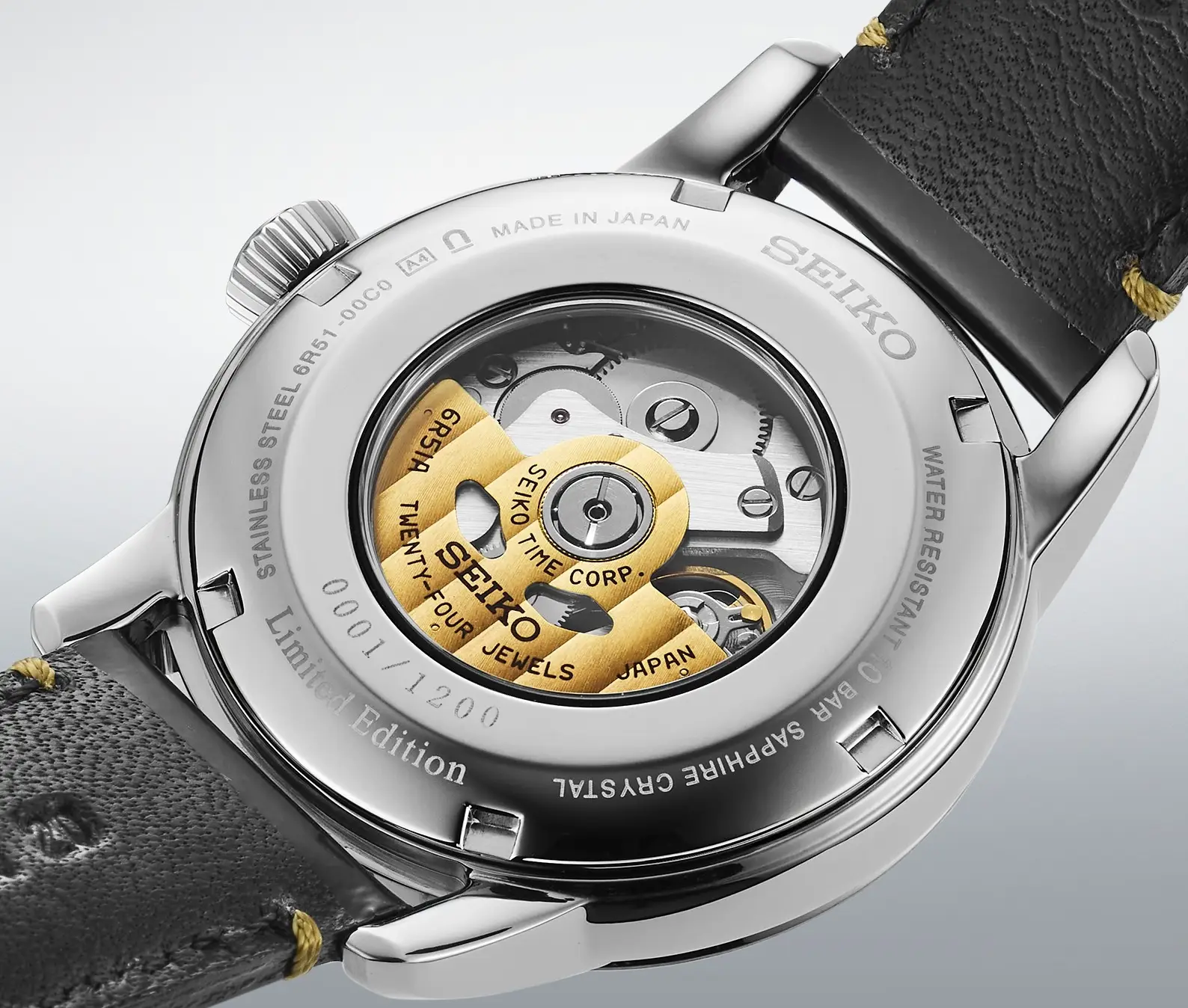 Dokładnie jest to mechanizm Seiko kaliber 6R51, który wyróżnia się atrakcyjnie wyglądającym wahnikiem w kolorze żółtego złota, z naniesionymi pasami genewskimi. Mechanizm łożyskowany jest na 24 kamieniach i charakteryzuje się bardzo atrakcyjnym poziomem rezerwy chodu, który wynosi aż 72 godziny.