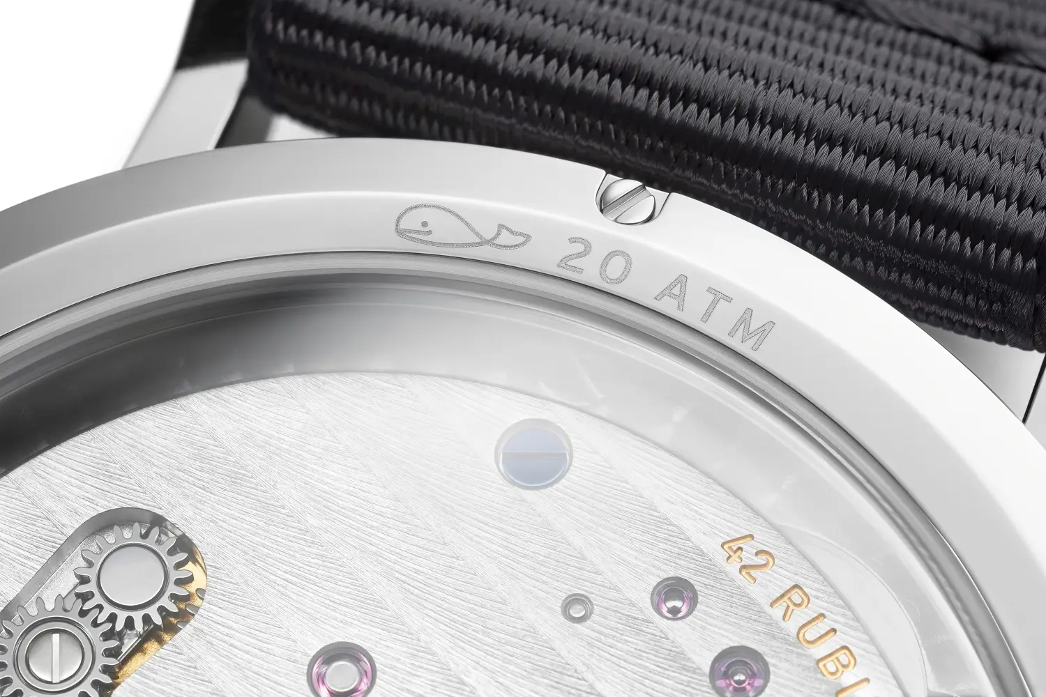 Klasa wodoszczelności sięga do 200 metrów (20 ATM), zatem Ahoi nadaje się do pływania, a nawet nurkowania rekreacyjnego. Na dekielku znajduje się subtelny grawer w kształcie ryby obok oznaczenia „20 ATM”, akcentem nawiązującym do poziomu wodoszczelności zegarka, umożliwiającej nawet nurkowanie.