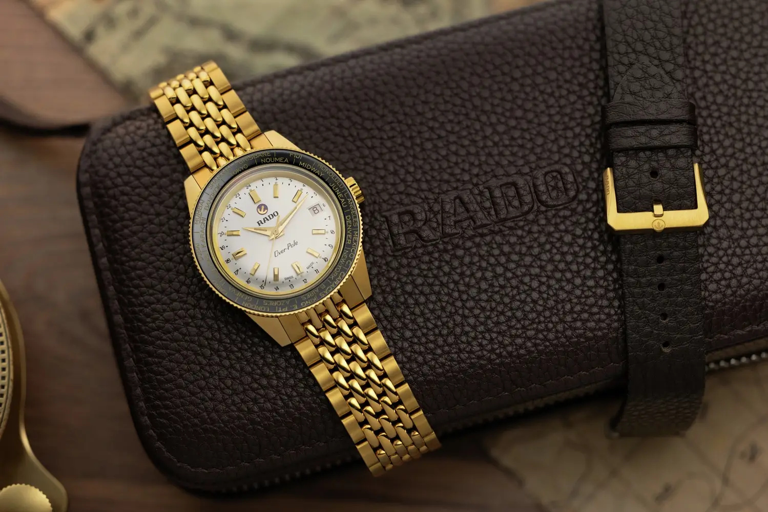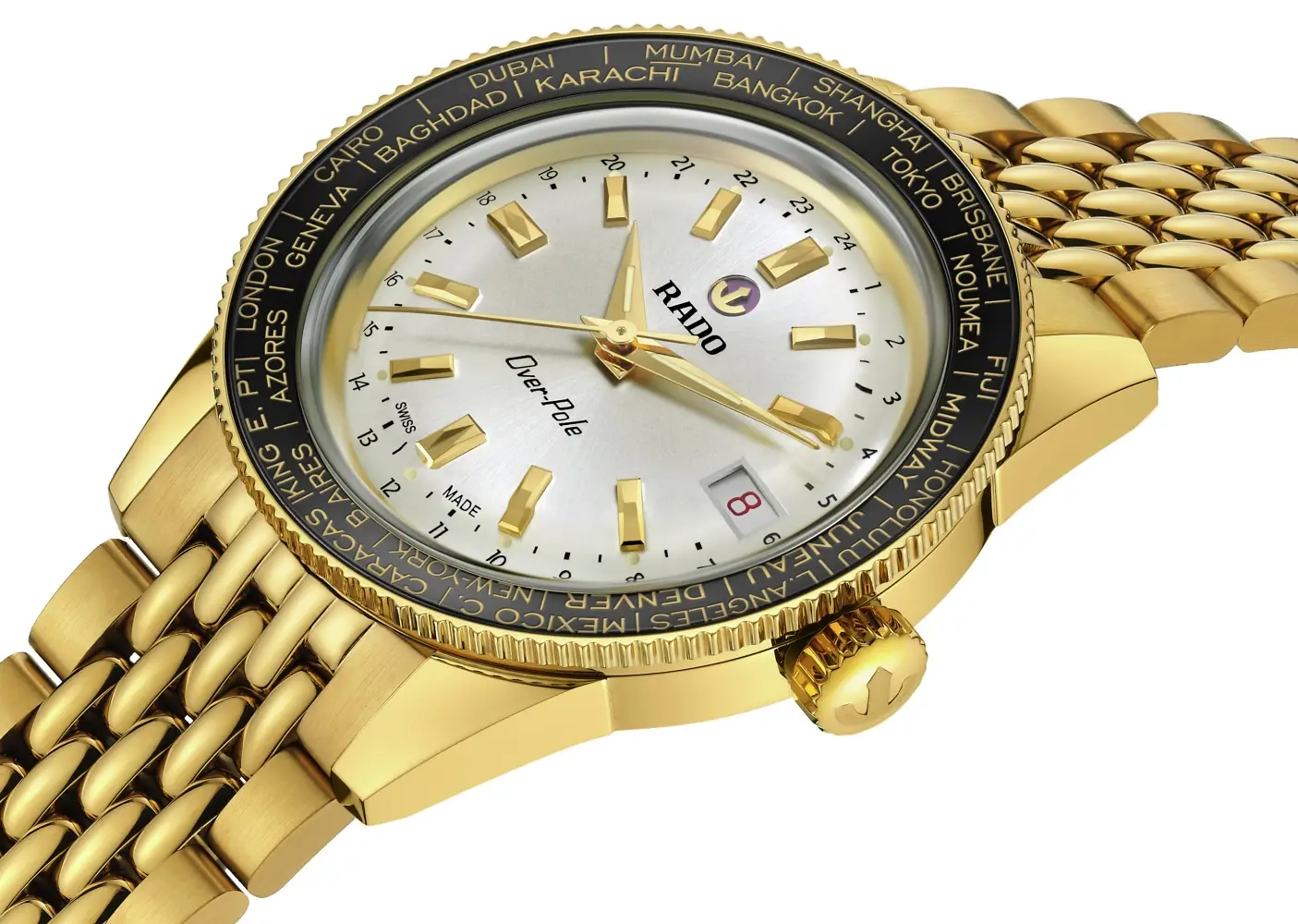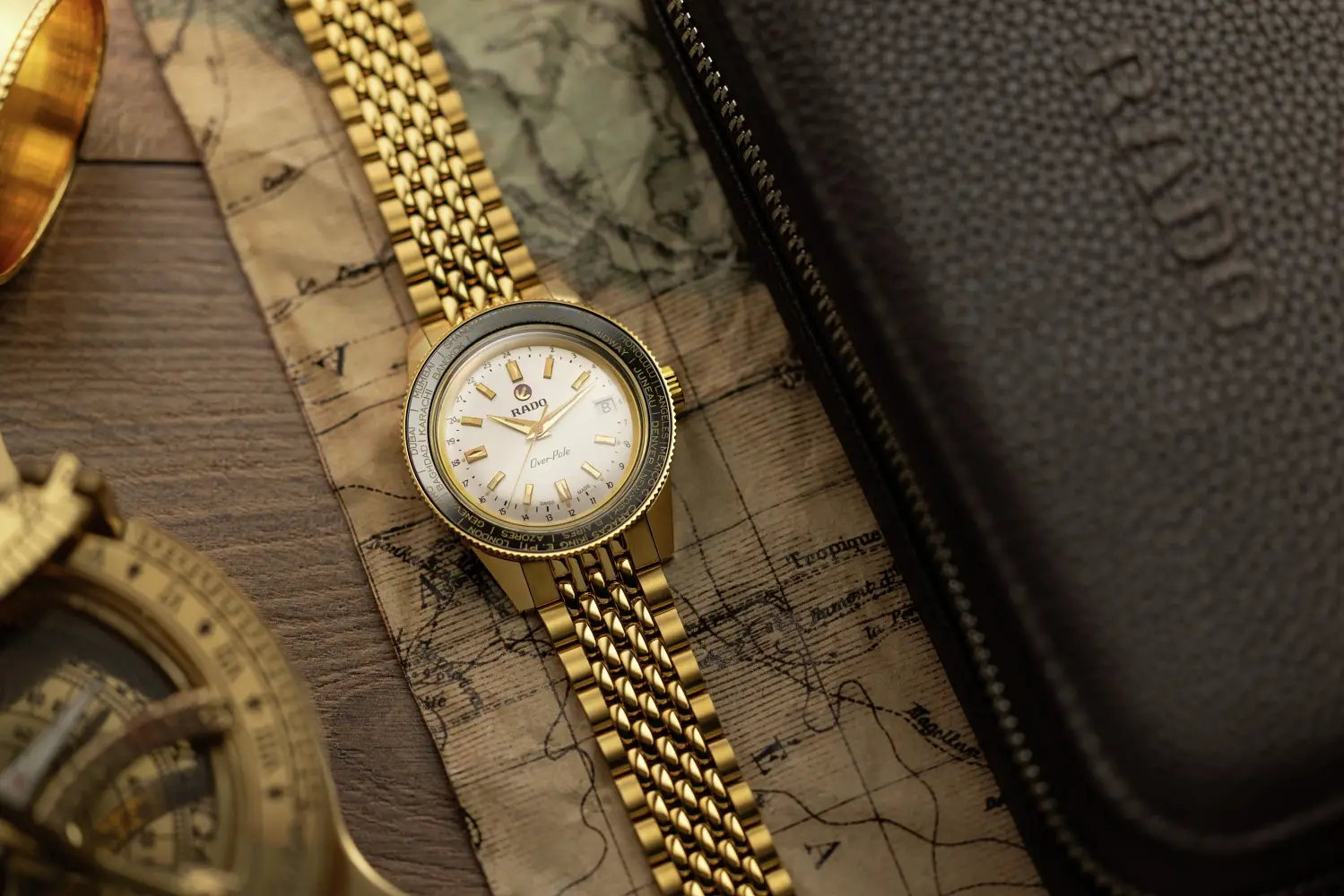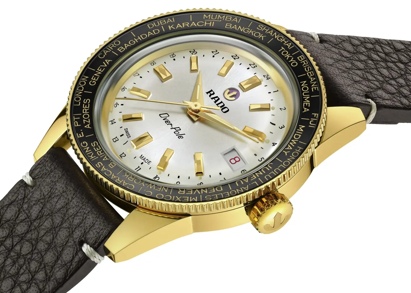 Rado Captain Cook Over-Pole, bo o nim mowa, jest limitowym do 1962 sztuk zegarkiem dla podróżników. Podkreśla to poprzez złote nazwy miast wygrawerowane laserowo na obracanym w obie strony, ceramicznym (a jakżeby inaczej) pierścieniu, a także poprzez dodatkowe, dwudziestoczterogodzinne wskazanie czasu. To klasyczny worldtimer.