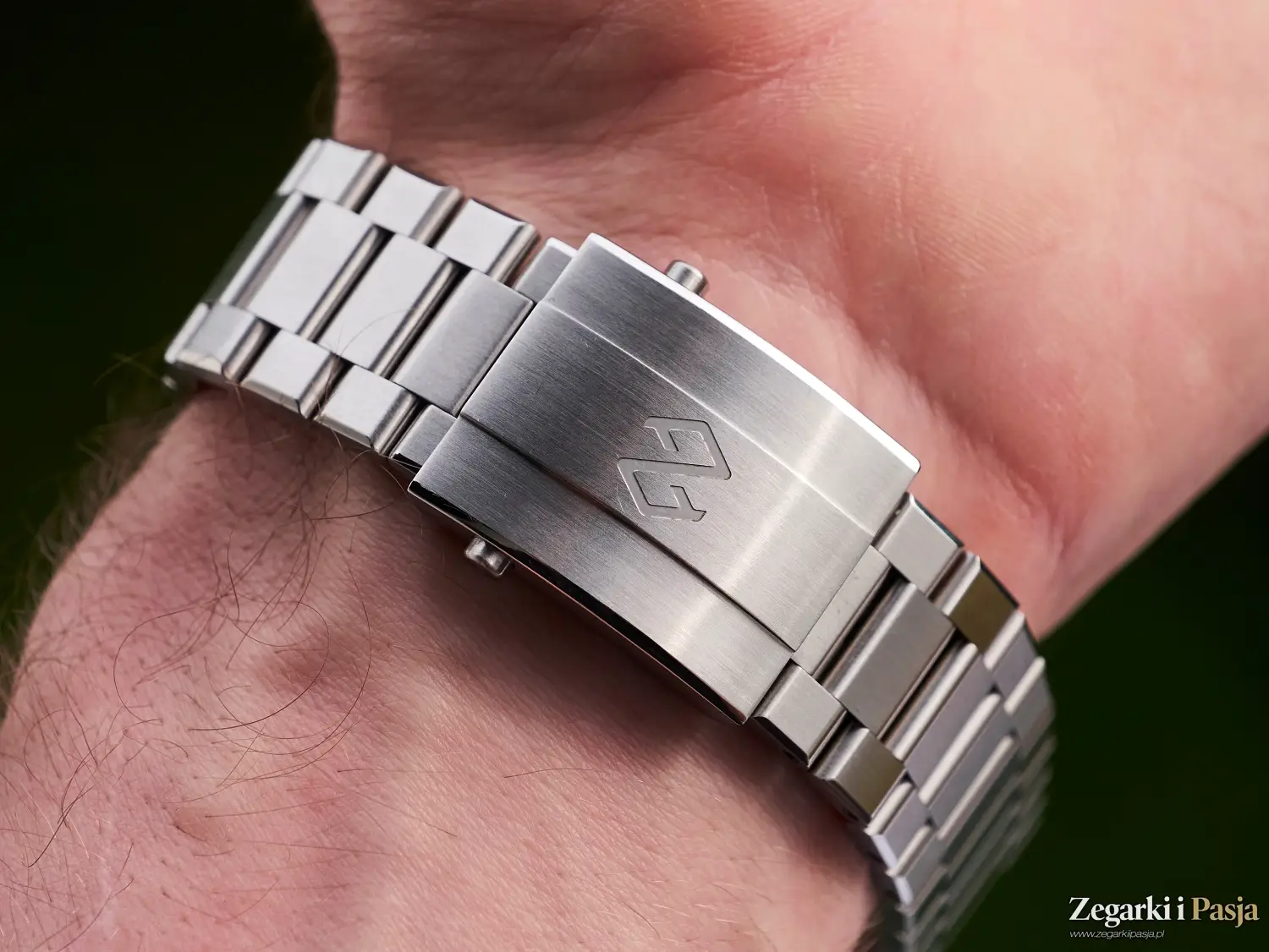 Bransoleta wykonana ze stali nierdzewnej z wkręcanymi ogniwami ma kompaktową klamrę ze składanym zapięciem i regulacją o 10 mm, co również zwiększa komfort noszenia. Do wyregulowania wystarczy wcisnąć przycisk na spodzie zapięcia i przesunąć do wybranej pozycji.