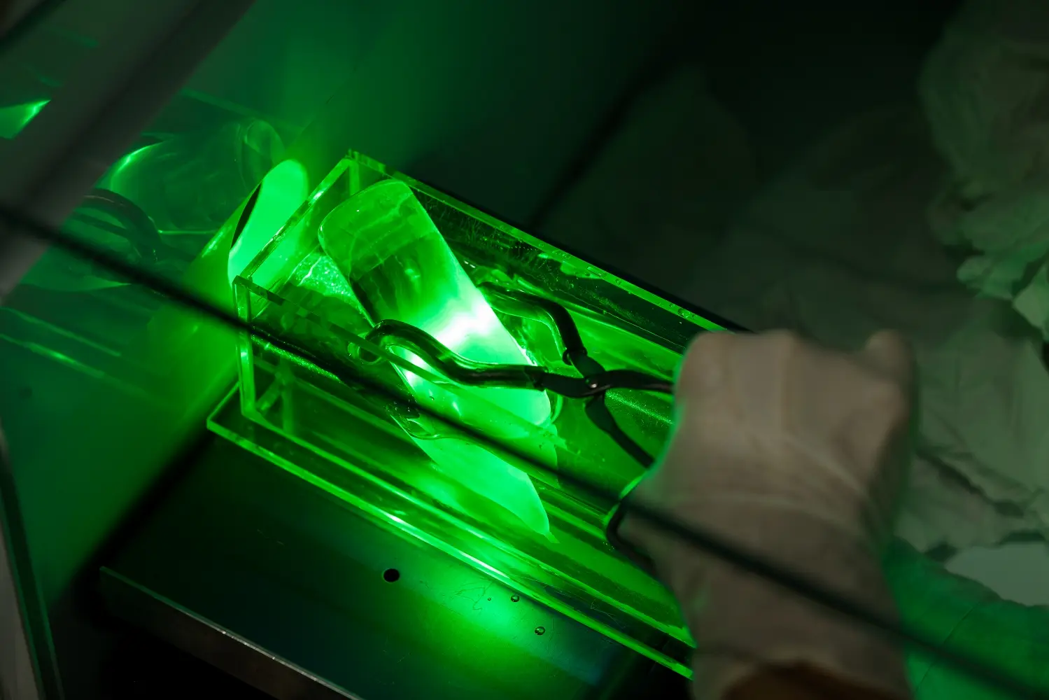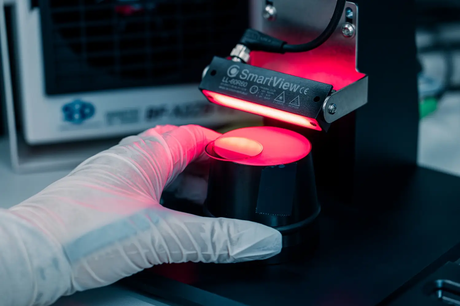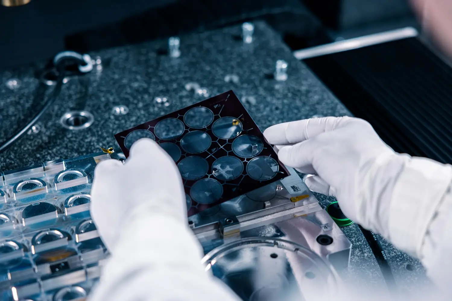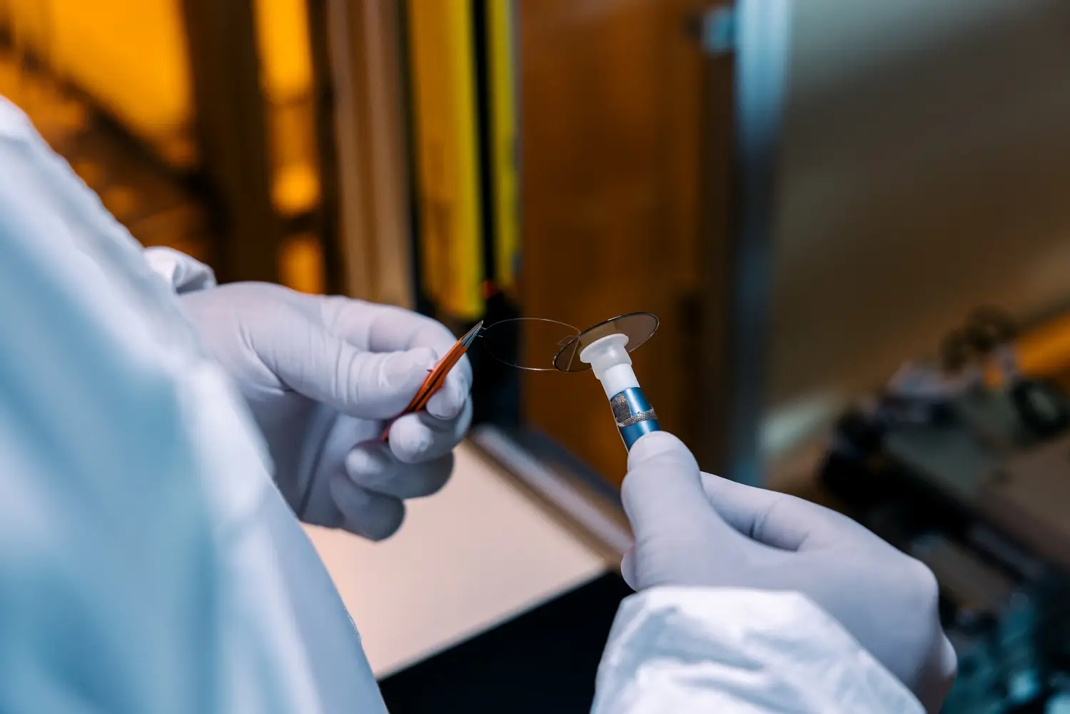 Przygotowanie podłoża: cienka warstwa krzemu jest osadzana na podłożu, które później zostanie zintegrowane ze szkłem. Krzem jest wybierany ze względu na jego półprzewodnikowe właściwości, umożliwiające konwersję fotonów w elektrony.