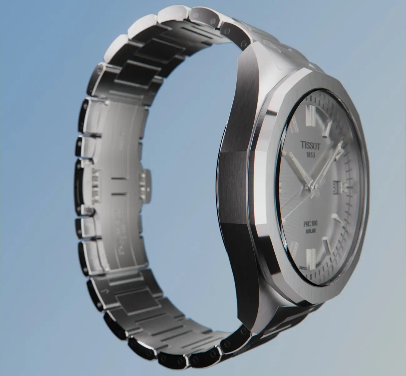 PRC 100 Solar łączy klasyczny design marki Tissot z ultranowoczesną technologią solarną. Zegarek wprowadzony na rynek w marcu 2025 roku jest odświeżoną wersją popularnej serii PRC 100 z połowy lat 2000, wzbogaconą o pionierski mechanizm Lightmaster Solar Quartz. Ta innowacja pozwala zegarkowi czerpać energię zarówno z naturalnego, jak i sztucznego światła, eliminując konieczność wymiany baterii i oferując ponad rok (nawet 14 miesięcy) rezerwy chodu po pełnym naładowaniu.