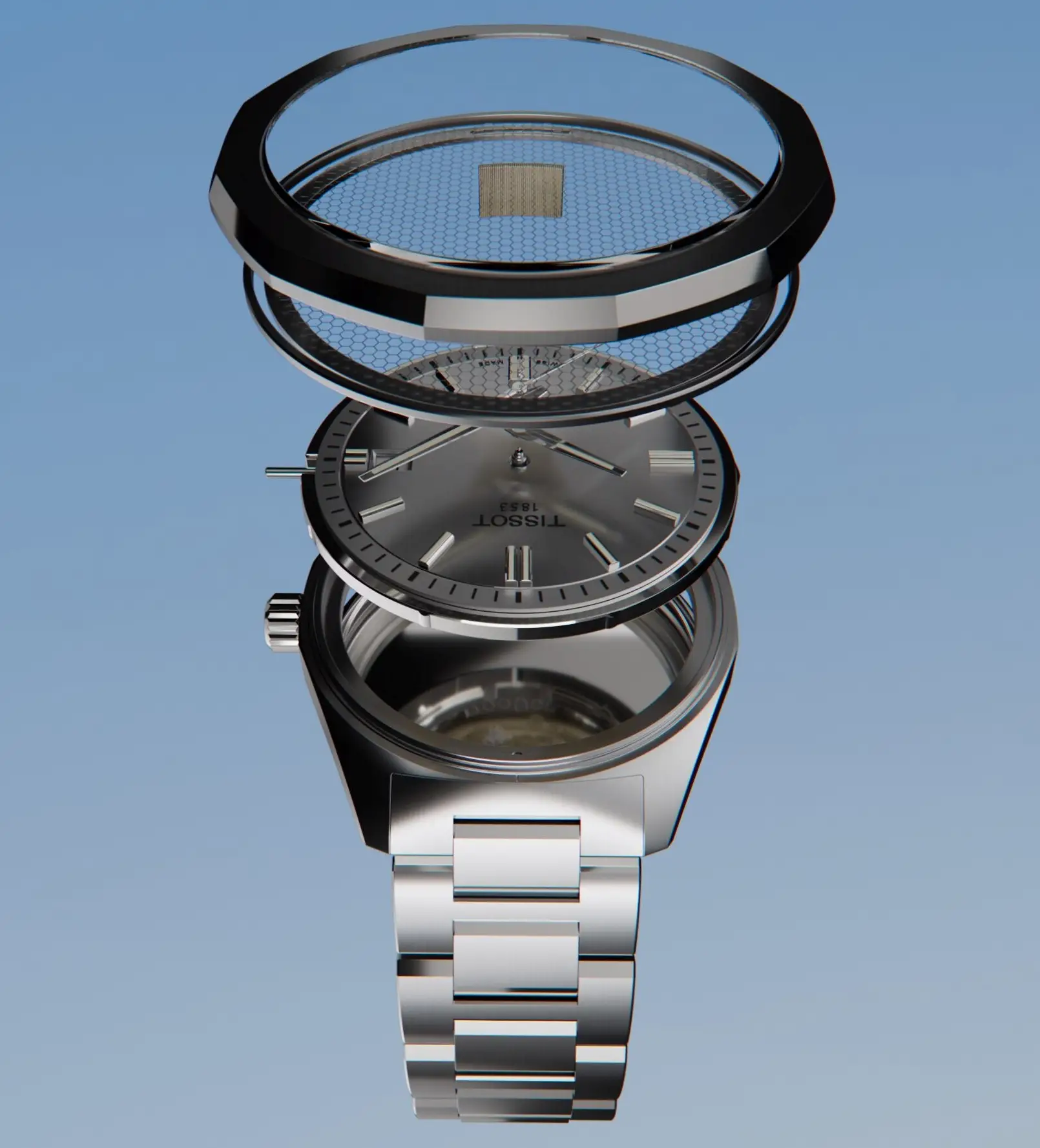 Sercem zegarka jest mechanizm Lightmaster Solar Quartz, opracowany we współpracy z CSEM w Neuchâtel. W przeciwieństwie do tradycyjnych zegarków solarnych, w których panele fotowoltaiczne są wbudowane w cyferblat, Tissot zatopił mikroskopijne ogniwa w hybrydowym szkle, zachowując czysty design i zostawiając pełną swobodę projektantom.