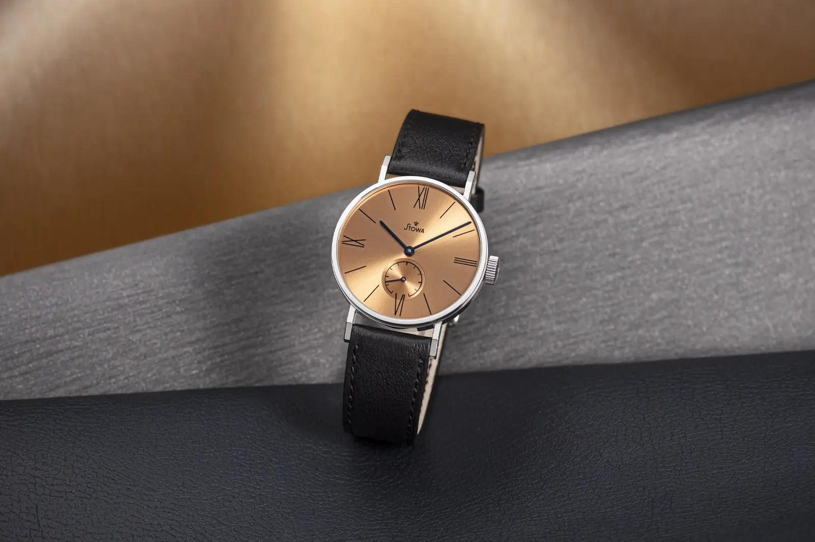 Zachowanie prostej, okrągłej koperty z delikatnie poprowadzonymi uszami stanowi wyraźne nawiązanie do modeli Stowa sprzed kilku dekad. Również łososiowy kolor tarczy został zainspirowany historyczną referencją modelu Stowa z 1937 roku.