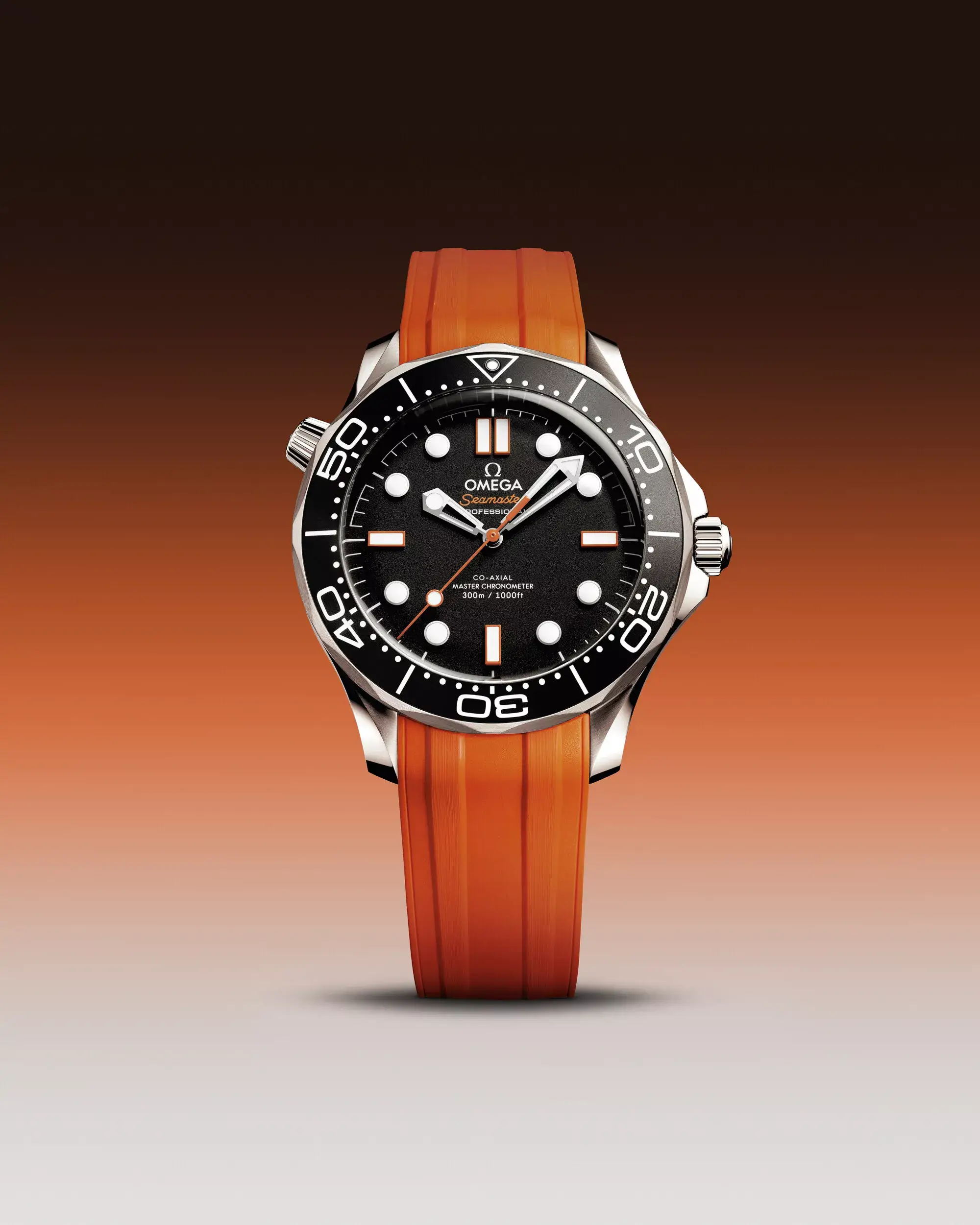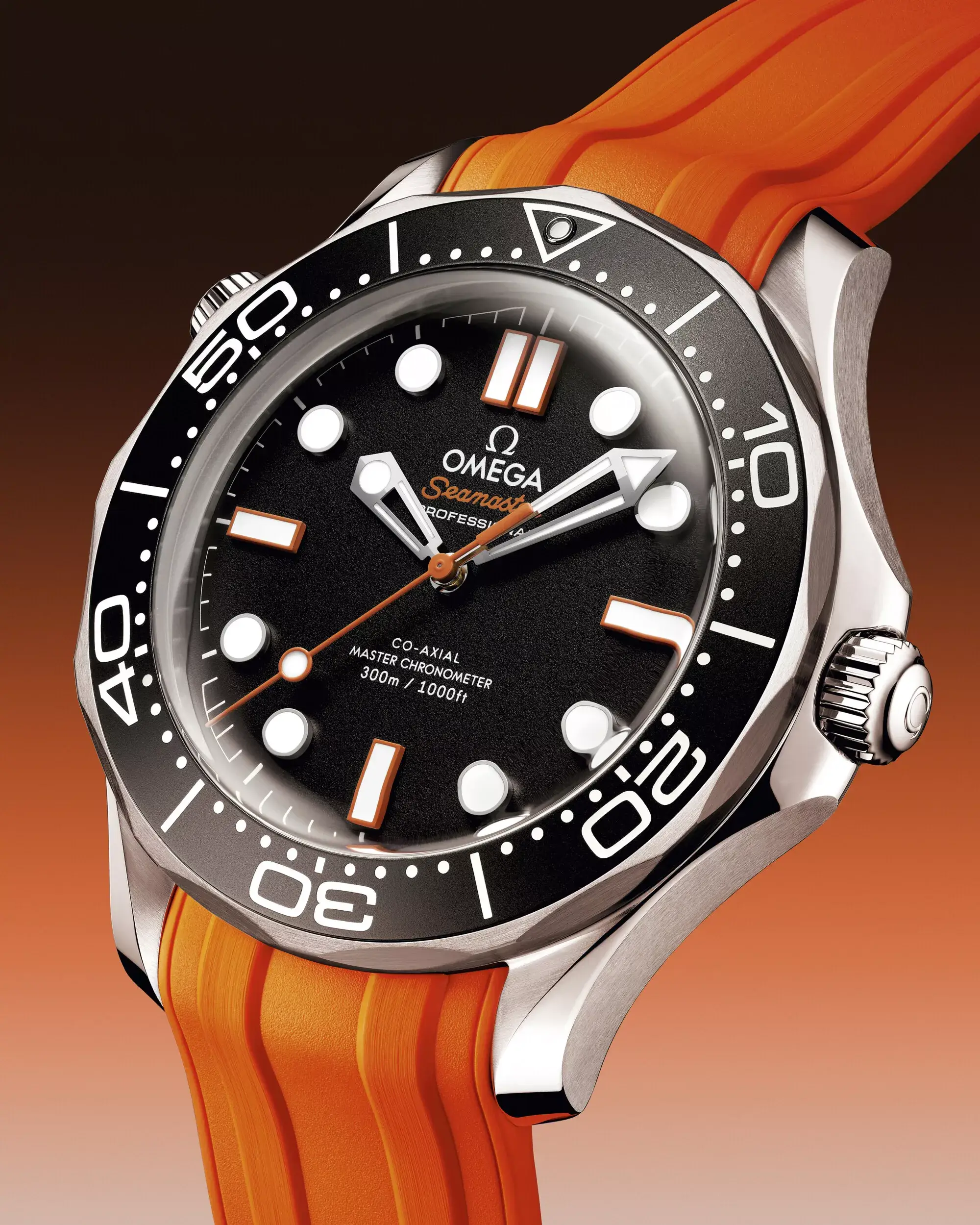 Charakterystyczny pomarańczowy odcień dodał wyrazistości i wyjątkowego uroku wielu kolekcjom Seamaster. Ogromną popularnością cieszył się model Seamaster Planet Ocean z pomarańczową wkładką lunety czy też wersji z pomarańczowymi, głównymi indeksami. W 2025 roku kolor pomarańczowy został wprowadzony do kultowej serii Diver 300M, dając klientom wybór między dwoma charakterystycznymi wersjami modelu ze stali nierdzewnej.