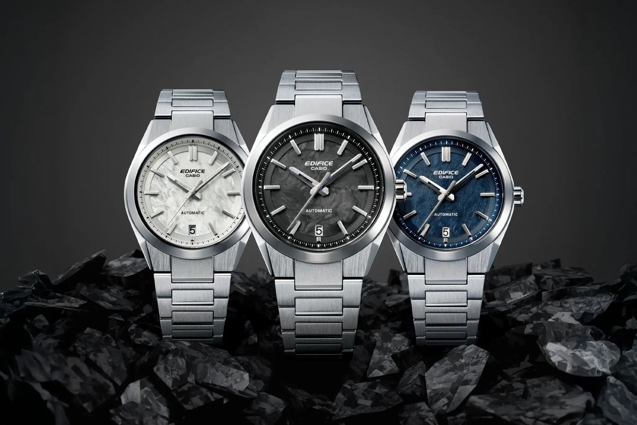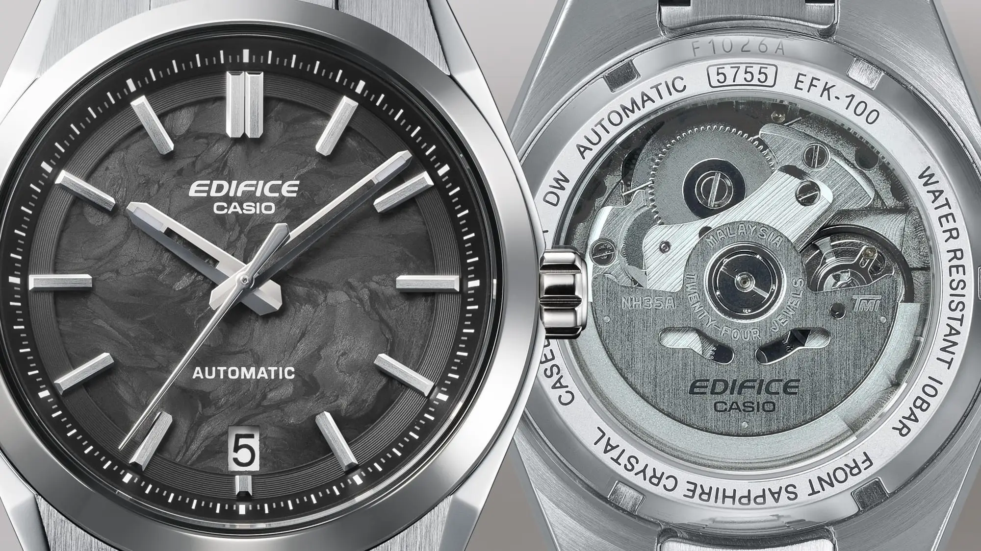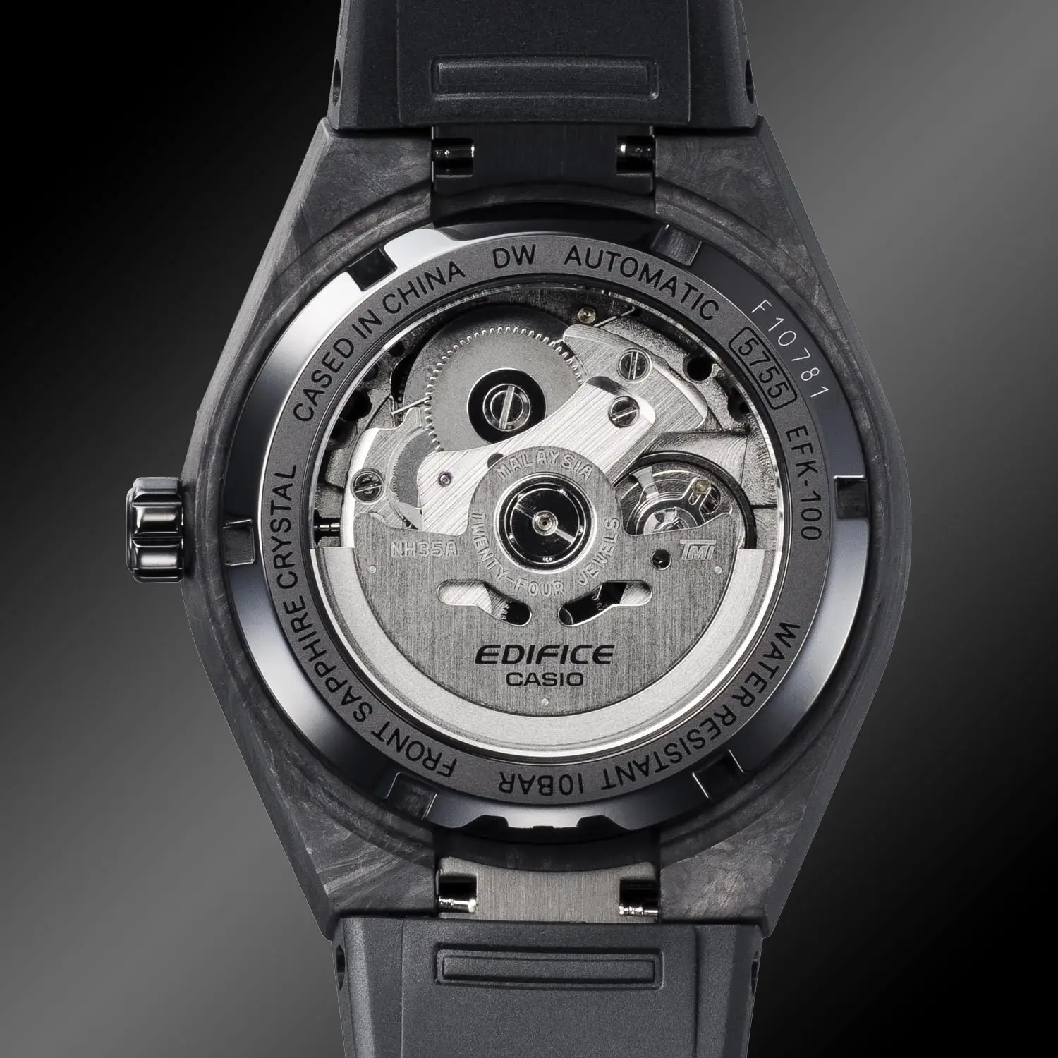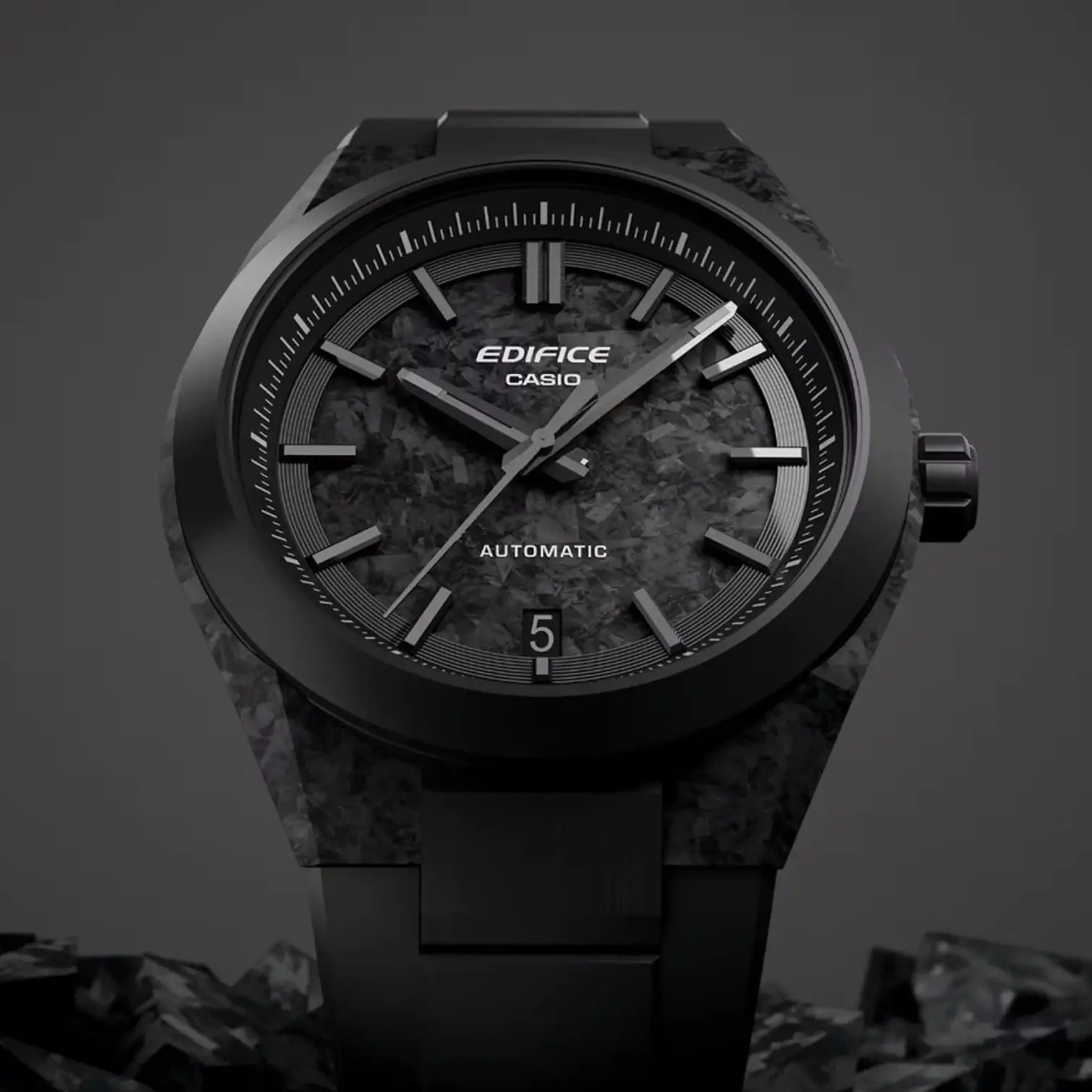 To pierwszy w historii Edifice zegarek mechaniczny, w którym zastosowano kuty karbon — materiał znany z wyjątkowej lekkości i wytrzymałości, wykorzystywany m.in. w motoryzacji. Marka Edifice tworząc swoje zegarki inspiruje się w dużej mierze światem motor sportu, łącząc zaawansowaną technologię z dynamicznym wzornictwem.