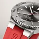 Trzeci wariant tego modelu do nadgarstka mocujemy go za pomocą silikonowego paska w kolorze czarnym, który ma od zewnątrz gładką powierzchnię z charakterystycznymi cyrklami jako logo marki przy końcach mocowanych do zegarka. Zapięcie to klasyczna, stalowa sprzączka z pinem. Wewnętrzna strona paska silikonowego jest perforowana wzorami fal, dla lepszego obiegu powietrza, które są zbliżone do tych, jakie możemy zobaczyć na tarczy.