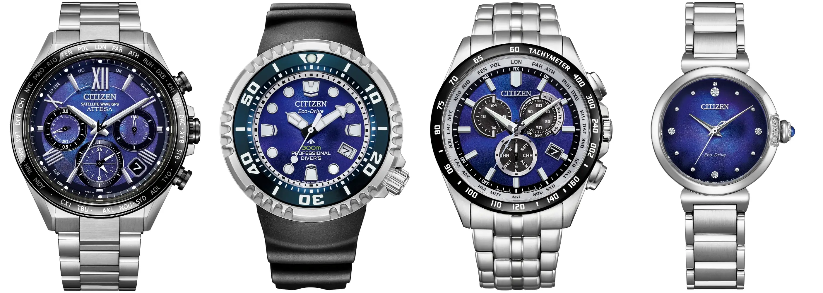 Seria "Unite with Blue" wyróżnia się zastosowaniem tarcz strukturalnych, które wykorzystują pigment-free atrament z mikrostrukturami odbijającymi światło, tworząc dynamiczne odcienie bez użycia chemicznych barwników. Tarcze wykonane z 100% recyklingowego poliwęglanu podkreślają zaangażowanie marki Citizen w ochronę środowiska.