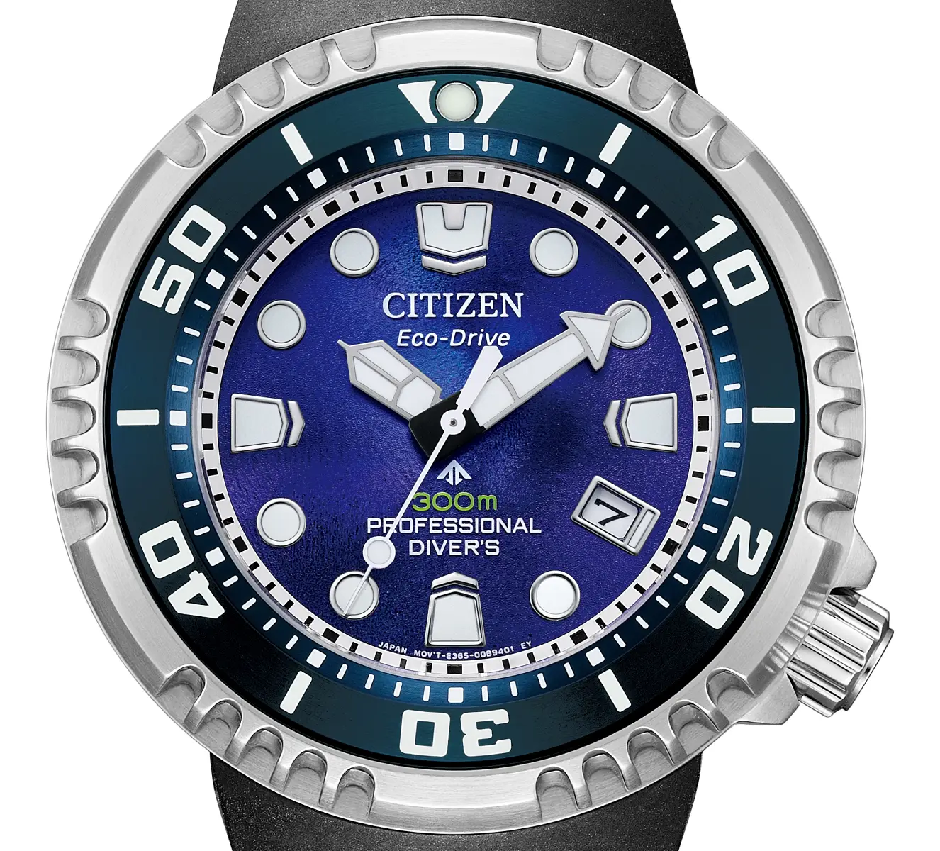 W modelu Citizen PROMASTER Eco-Drive Diver 300m również zastosowano zasilany światłem mechanizm „in-house” kaliber E365 Eco-Drive, gwarantujący precyzję chodu na poziomie ±15 sekund na miesiąc i 12 miesięcy działania po naładowaniu światłem „na full”. Zegarek ma oczywiście zakręcaną koronkę umieszczoną na „w pół do piątej” i pełny dekiel wykonany ze stali, gwarantujące 300 metrów wodoszczelności i spełniający normę ISO 6425:2018 dla nurkowania saturacyjnego.
