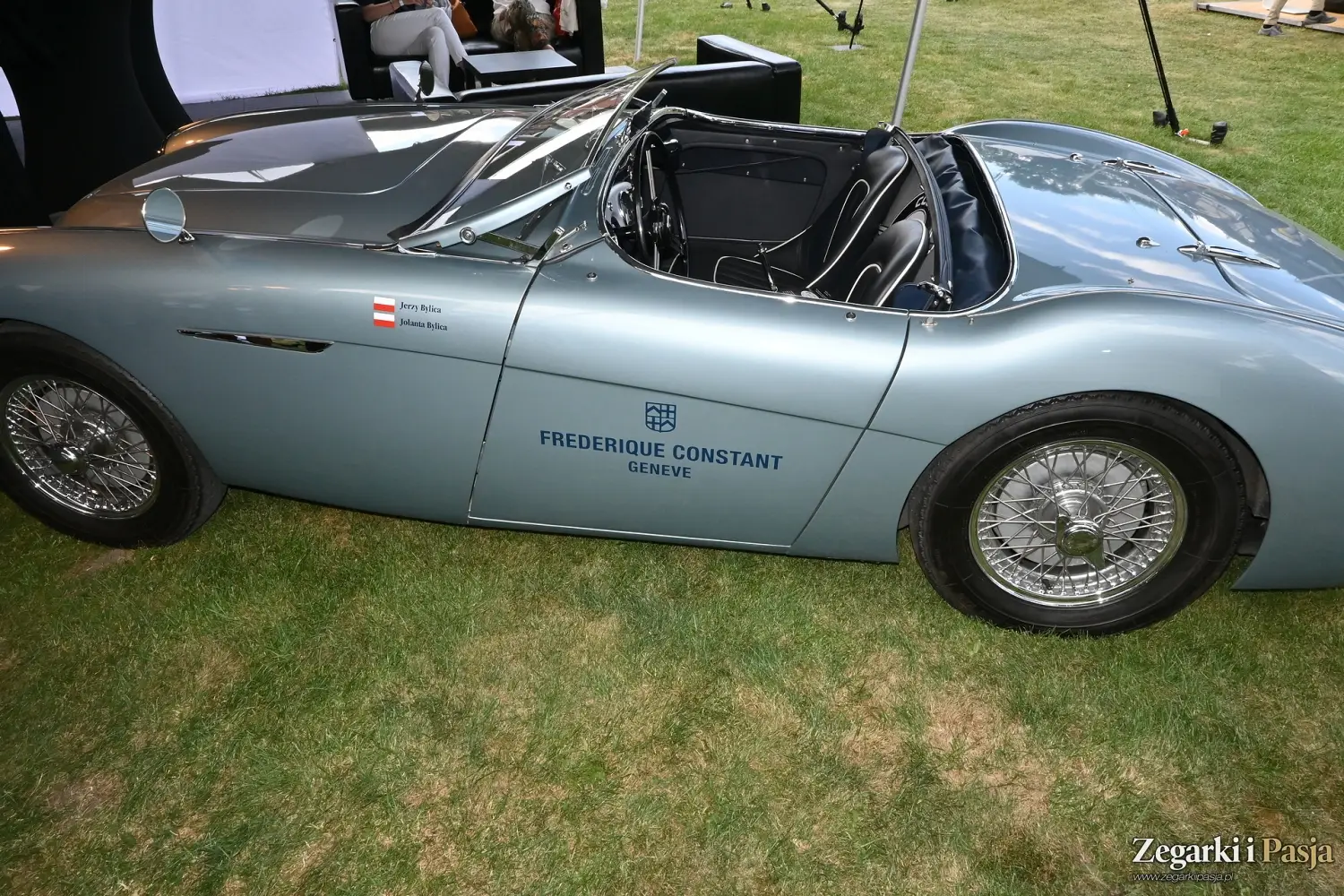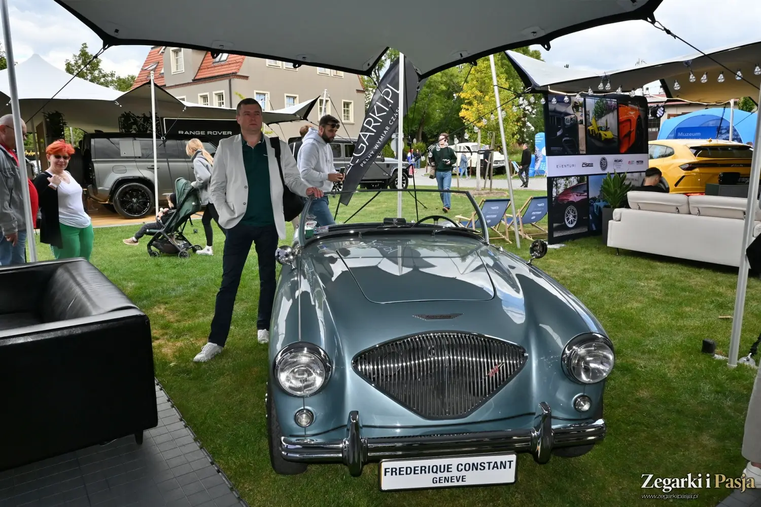 Otoczenie związane z oficjalną premierą tej kolekcji zegarków, która odbyła się już na imprezie samochodowej wspomnianej na wstępie, na terenie dziedzińca i pięknych ogrodów zamku Topacz pod Wrocławiem, doskonale pasowało do pięknych zegarków Frederique Constant Classics Vintage Rally Healey. Na eleganckim stoisku tej marki mieliśmy możliwość porozmawiania o technicznych aspektach zegarków.
