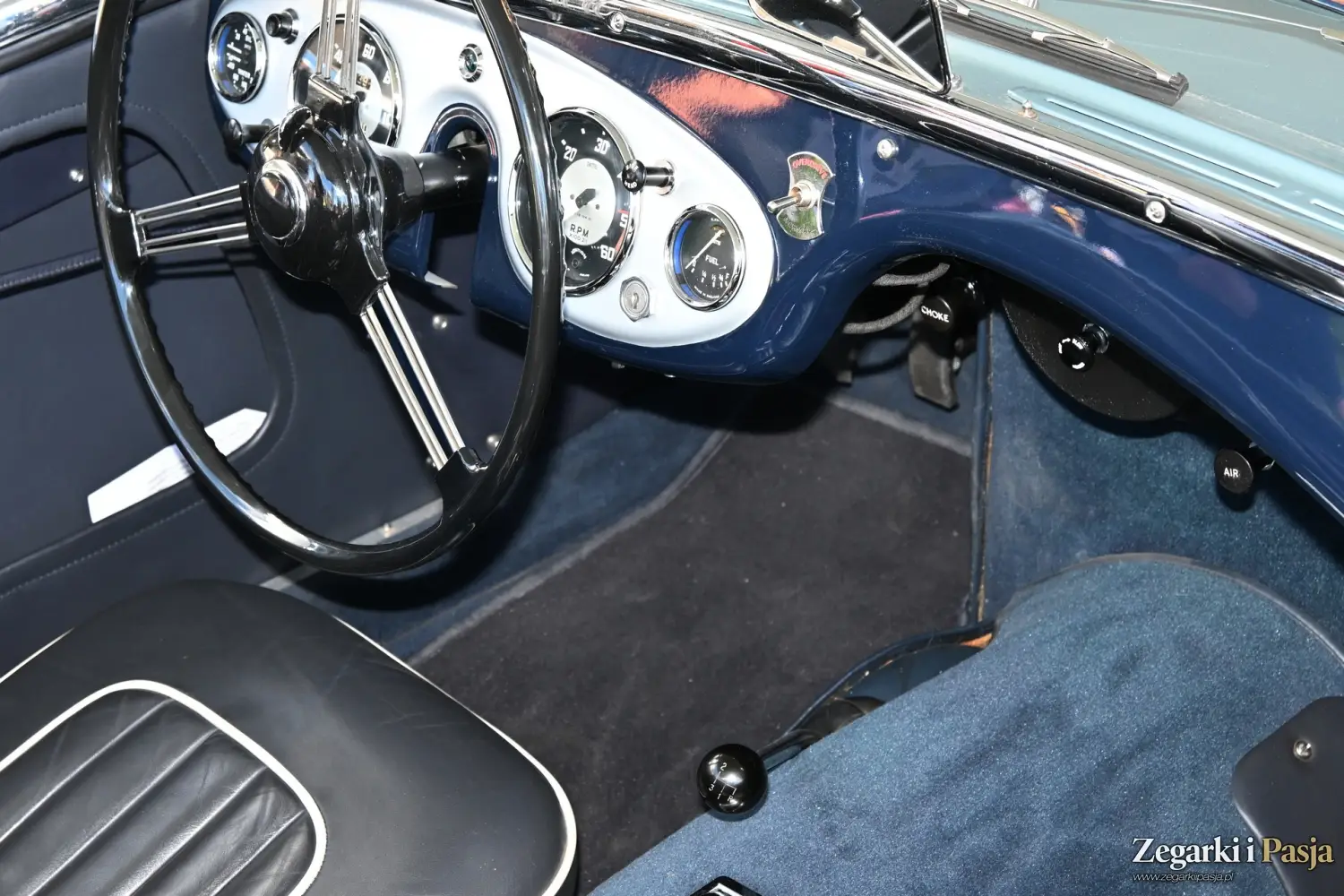Była również możliwość zapoznania się z aktualną kolekcją na żywo, ponieważ zegarki były prezentowane w gablocie, jak i w ramach katalogów marki. A w osobnym miejscu widzieliśmy także właśnie dzisiejszych bohaterów - kolekcję Austin Healey, obok niej przepiękny, oryginalny samochód Austin Healey w kolorze błękitnym, w bardzo dobrym stanie.