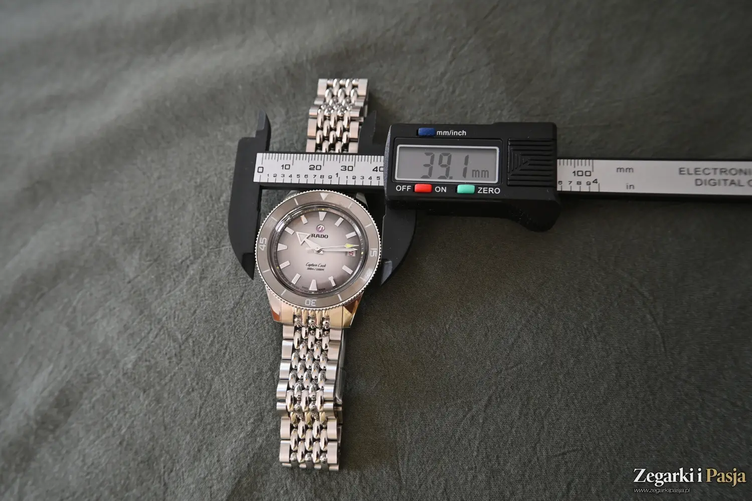 Drugi trend, w który ten zegarek się wpisuje, to taki powrót - można powiedzieć, że na dość dużą skalę - do zegarków, które mają mniejsze rozmiary kopert. A to także jest odniesienie do lat siedemdziesiątych czy osiemdziesiątych XX wieku, kiedy zegarki męskie były znacznie mniejsze niż dziś, czy ogólnie ostatnio. Nadal jest duża grupa użytkowników lubiących duże zegarki i takie modele znajdą również w linii Captain Cook od Rado, ale zegarek, który prezentujemy dzisiaj, to model z kopertą o średnicy 39 mm, czyli naprawdę niewielką.