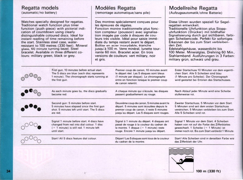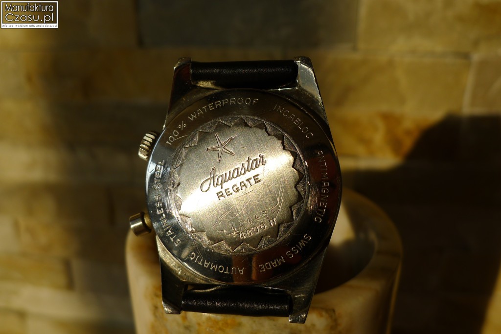 Regate to nieskomplikowany w obsłudze czasomierz, który poza funkcją odliczania 5 minut do rozpoczęcia wyścigów żeglarskich, po prostu ma nam wskazywać bieżący czas każdego dnia. Prezentowany egzemplarz ma ok. 40 lat, mimo to działa perfekcyjnie, co zawdzięcza dobrze wykonanemu mechanizmowi, podzespołom i elementom zewnętrznym.