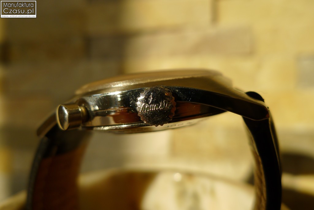 Prezentowany zegarek posiada nieoryginalny, skórzany, czarny pasek. Fabrycznie czasomierze te wyposażone były także w pasek lub stalową bransoletę typu NSA.