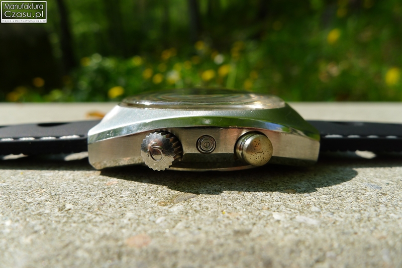 Koperta recenzowanego Memomatic’a wykonana jest w całości ze stali nierdzewnej. W czasomierzach, które opuszczały manufakturę Omegi cała koperta była zmatowiona i posiadała szlif słoneczny, a ranty były szlifowane na połysk.