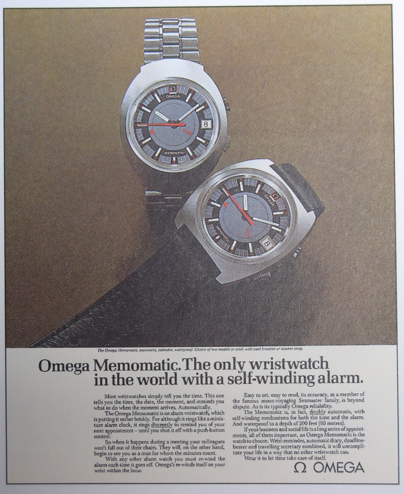Model Memomatic, który zaprezentowano w 1969 roku, był jednak znacznie bardziej innowacyjny i użyteczny niż wszystkie wykonane do tamtej pory czasomierze z alarmem – oferował swojemu właścicielowi możliwość ustawienia nie tylko godziny alarmu, ale jako pierwszy czasomierz na świecie, umożliwiał także określenia dokładnej minuty, w której alarm ma zostać aktywowany! Dodatkowo zegarek napędzany był automatycznie nakręcanym mechanizmem.