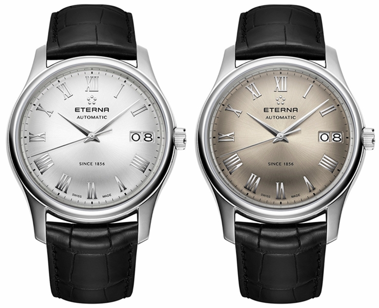 Eterna Granges 1856 oferowana jest w 10 różnych wersjach: istnieją cztery kolory tarczy (srebrny, czarny, niebieski, i grafitowy) wszystkie z pięknym szlifem słonecznym, a każdy z nich jest dostępny na czarnym lub brązowym pasku z zapięciem typu motylkowego lub na bransolecie. Wersja z tarczą w srebrnym kolorze może być wybrana z arabskimi lub rzymskimi indeksami a grafitowa ma rzymskie.
