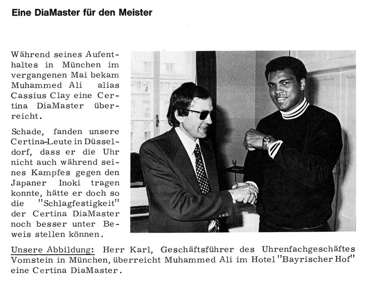 Do promowania nowej kolekcji zegarków Dia-Master zaproszono amerykańskiego Mistrza Świata Wagi Ciężkiej w boksie – Muhhamed’a Ali.
