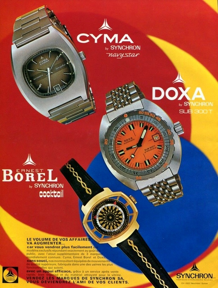 Na początku lat 70’ XX wieku cała branża produkująca zegarki mechaniczne została bardzo silnie dotknięta przez kryzys spowodowany pojawieniem się zegarków kwarcowych. Tańsze i bardziej dokładne zegarki kwarcowe spowodowały głęboki kryzys w Szwajcarskim przemyśle zegarkowym, który wyspecjalizował się przecież przez dziesiątki lat w produkcji czasomierzy mechanicznych. W związku z kryzysem, wiele przedsiębiorstw nie przetrwało do dnia dzisiejszego, a inne zostawały sprzedawane lub łączyły się w grupy, aby wspólnie stawić czoła trudnej sytuacji. W takich właśnie okolicznościach powstała grupa SYNCHRON, zrzeszająca m.in. takie manufaktury, jak Cyma, Ernest Borel, Girard Perregaux, Doxa, Eberhard &Co. i inne.