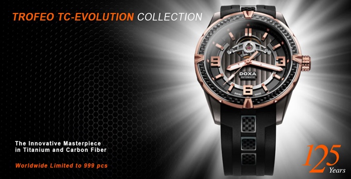 Ponadto firma obchodzi w tym roku swoje 125-lecie powstania - 1889 ÷ 2014 - co stanowiło doskonałą okazję do stworzenia wyjątkowych modeli upamiętniających to wydarzenie. Powstał między innymi model DOXA Trofeo TC-Evolution wykonany z tytanu i karbonu, oferowany w 3 różnych wersjach koperty, każda wersja w limitowanej ilości 999 sztuk.