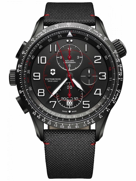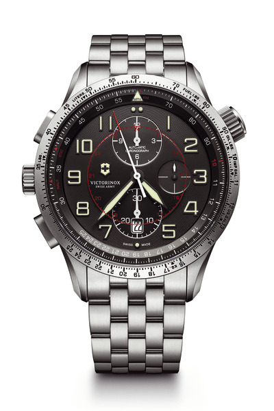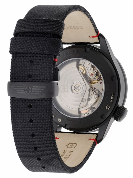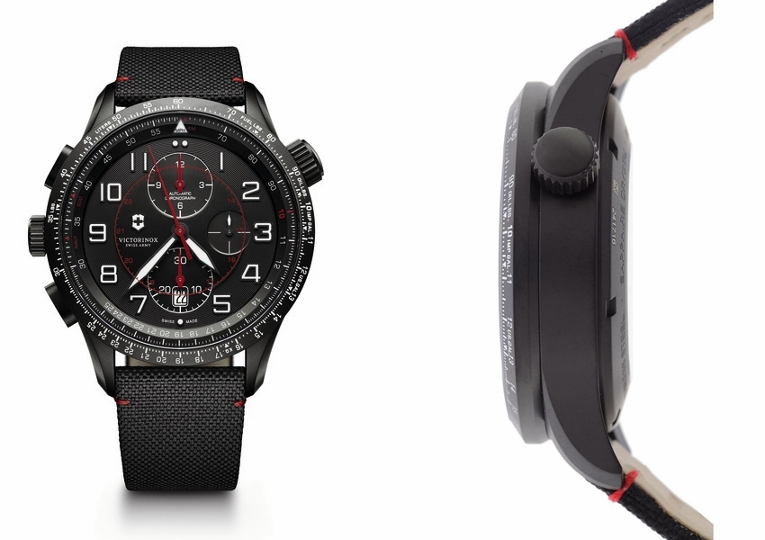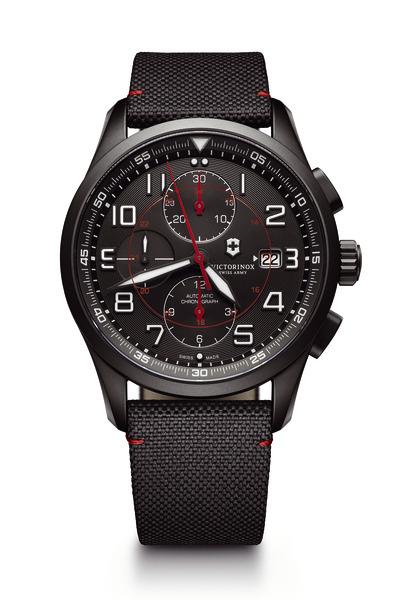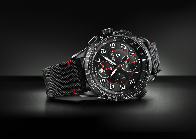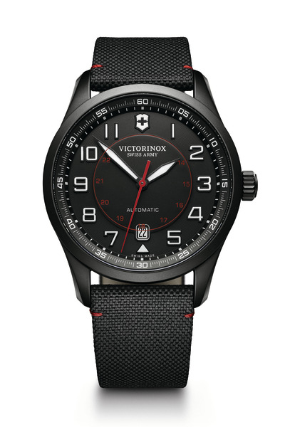 We wszystkich modelach Airboss Mach 9 flagowy kolor Victorinox – czerwony – jest zaakcentowany dwukrotnie: na wskazówce sekundowej oraz w postaci czasu wojskowego naniesionego po wewnętrznej stronie szkła.