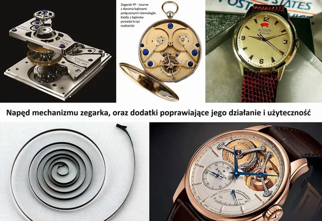 Napęd mechanizmu zegarka, oraz dodatki poprawiające jego działanie i użyteczność
